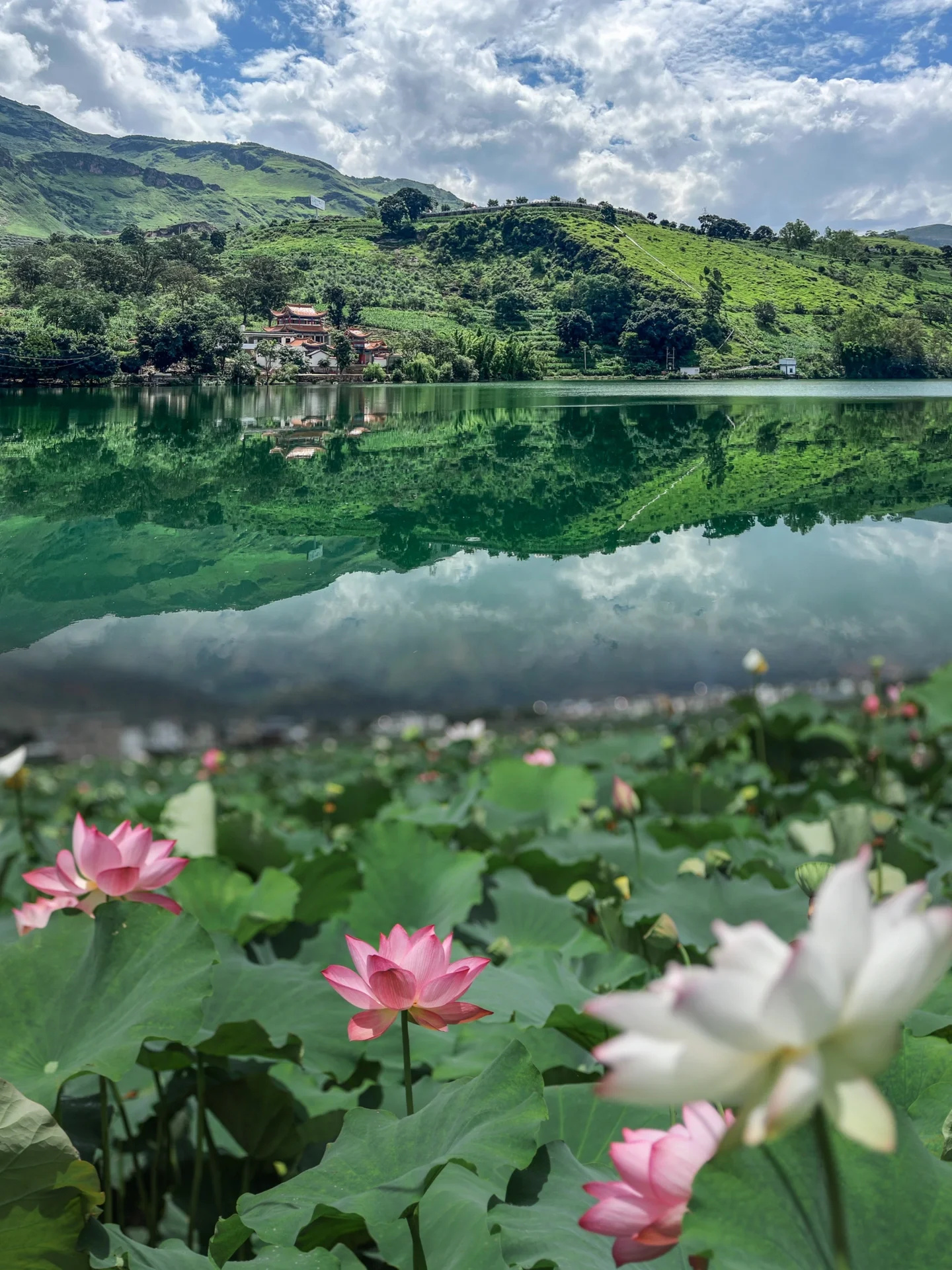必玩景点1:我们4大1小20元坐至山顶观景台,千亩荷花尽收眼底,文创店、小吃店、土产店一应俱全。