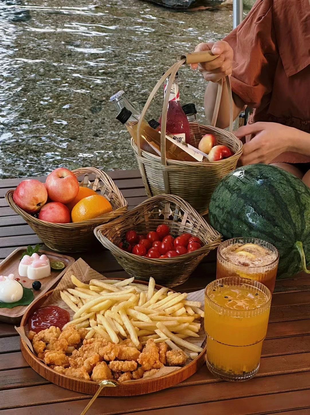 还可以带一些颜色鲜艳的水果🍇🍉和饮料🥤。
