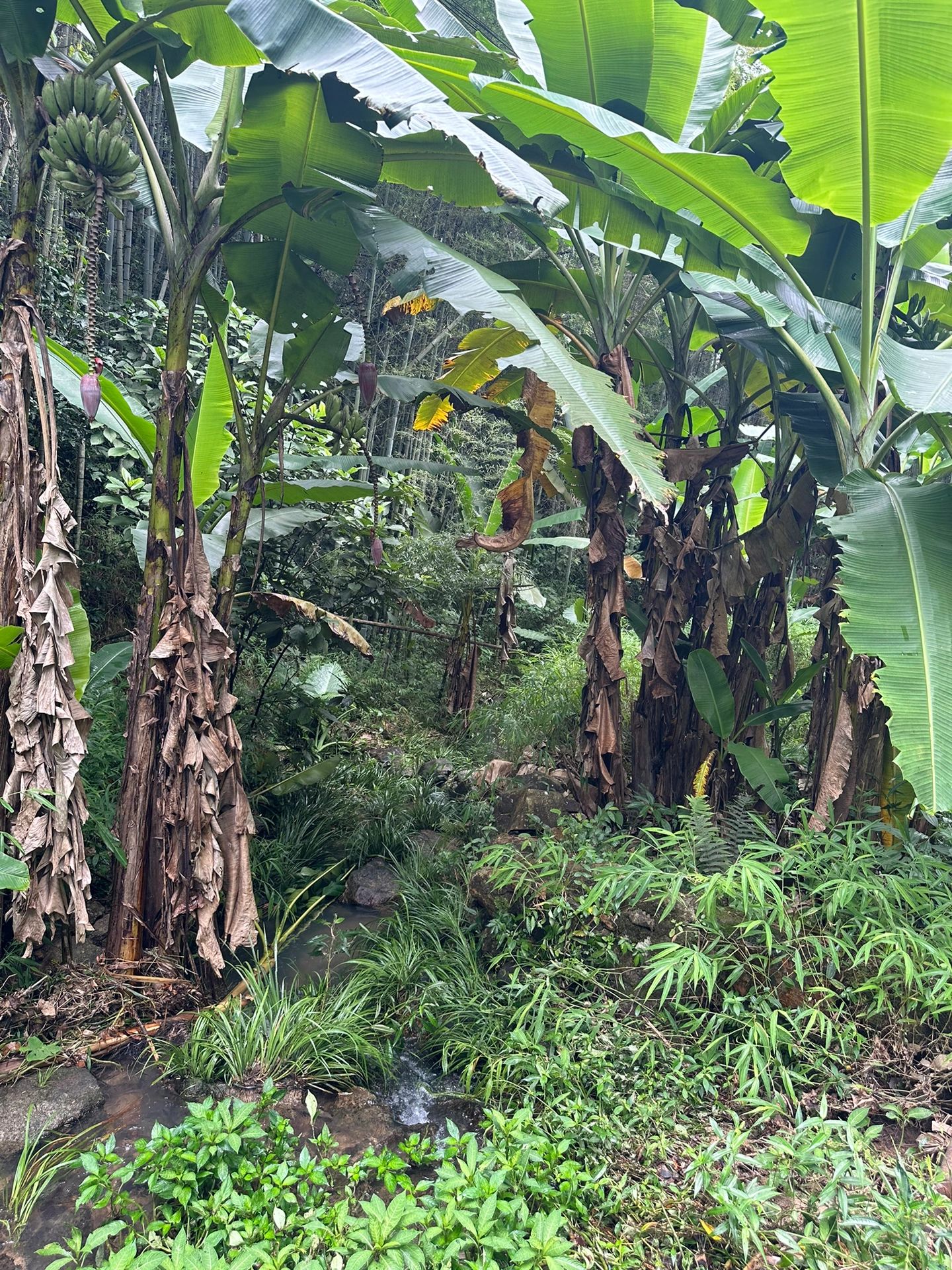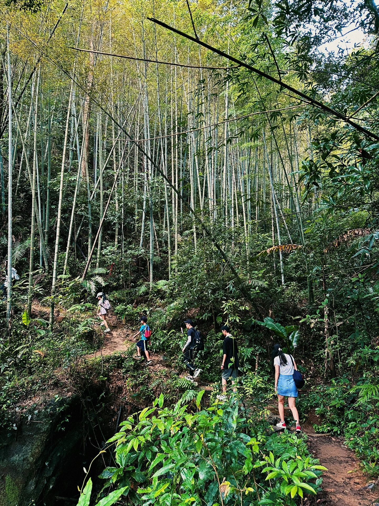 ❣️沿途会遇到大片竹林,芭蕉林,各种小溪,小潭子,瀑布,整个路线都比较平坦,落差小,坡度20度左右,泥泞路较多。
