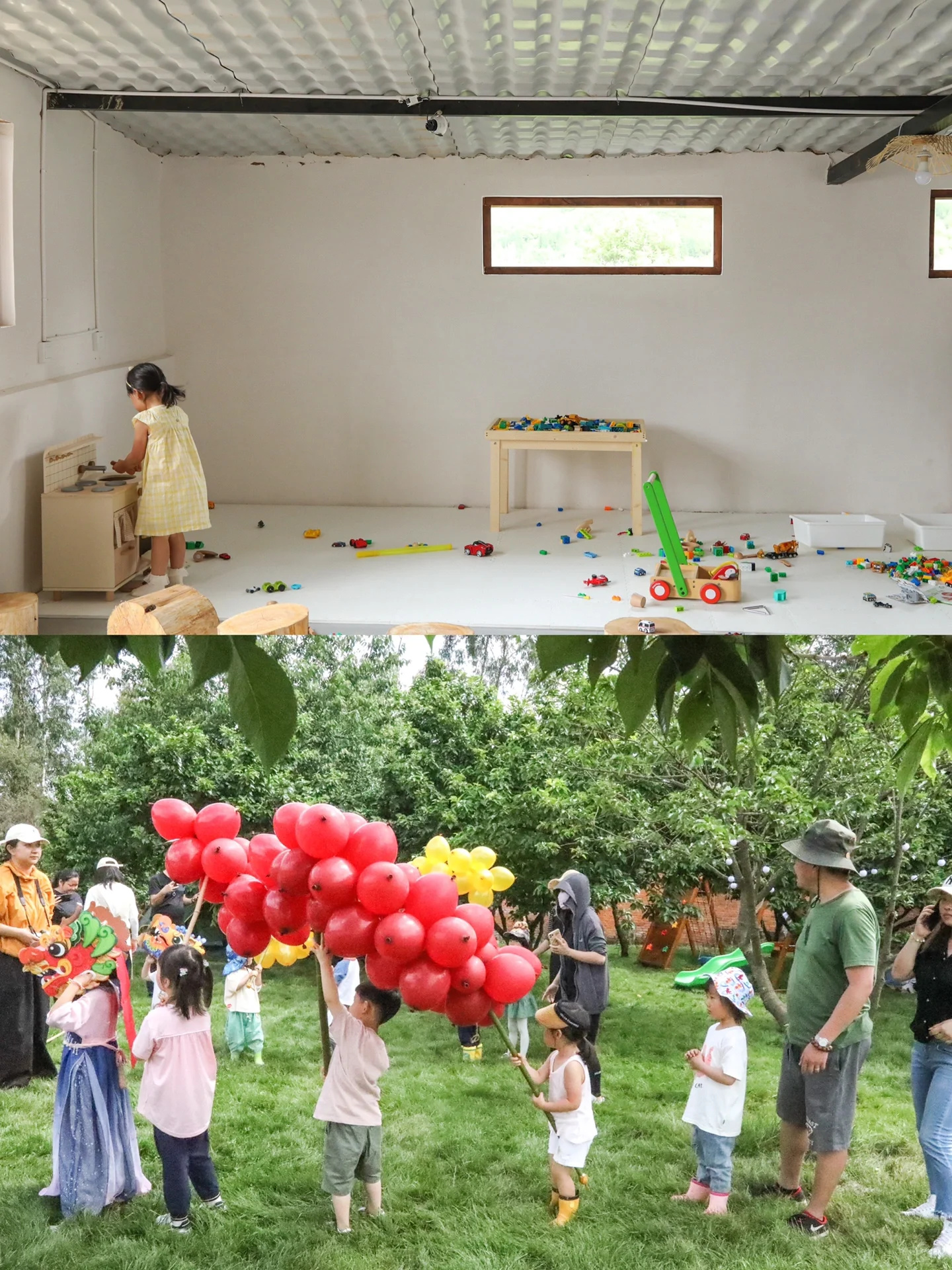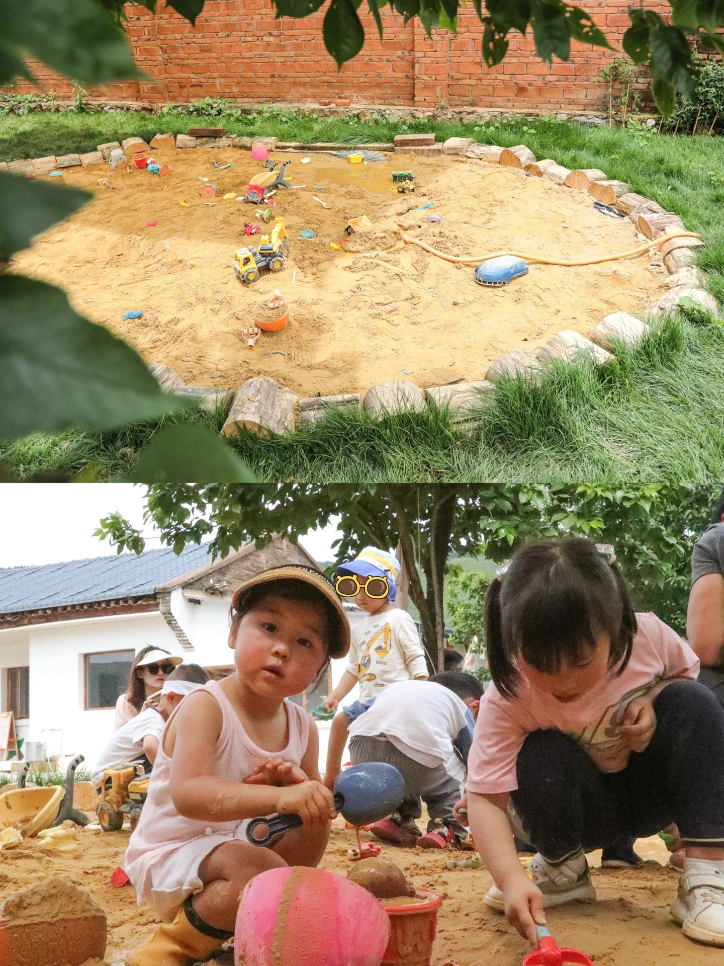 🏕那天我们到达后,在庭院里看到了很多好看好玩的,骑了木马、玩了石头、铲了沙土,凉棚下坐着休息了一会,午餐就开餐了。