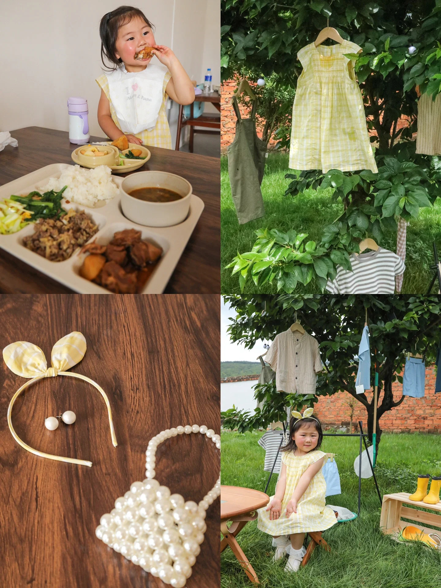 舞龙结束还包了粽子,前一天童趣跳蚤市场的置景还在,我也去试了试,让妈妈把我的小黄裙挂上去。