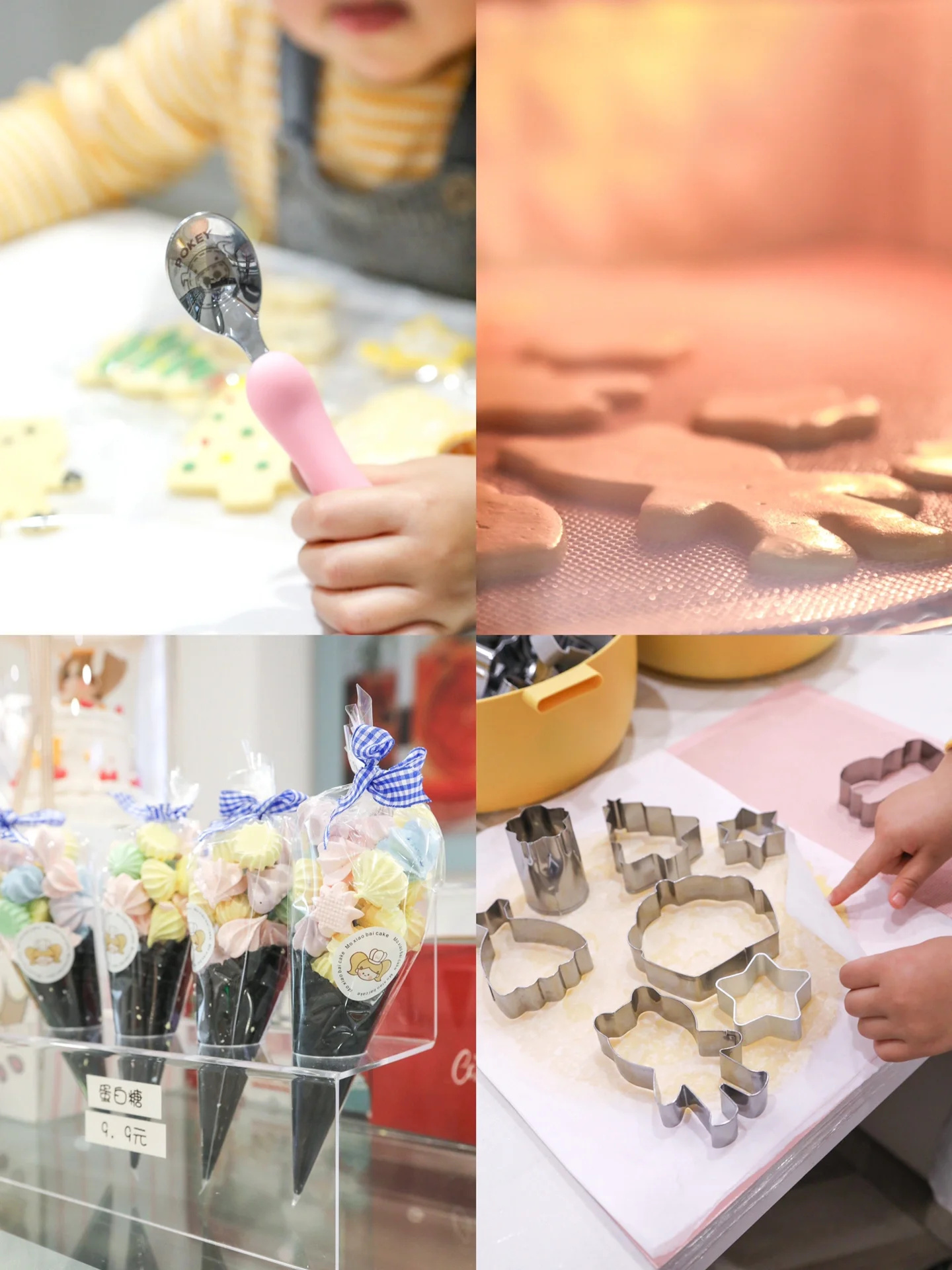 饼干制作为店里提供面饼,免去了打发黄油、和面团的过程,给小朋友们两大框磨具选择进行压模。