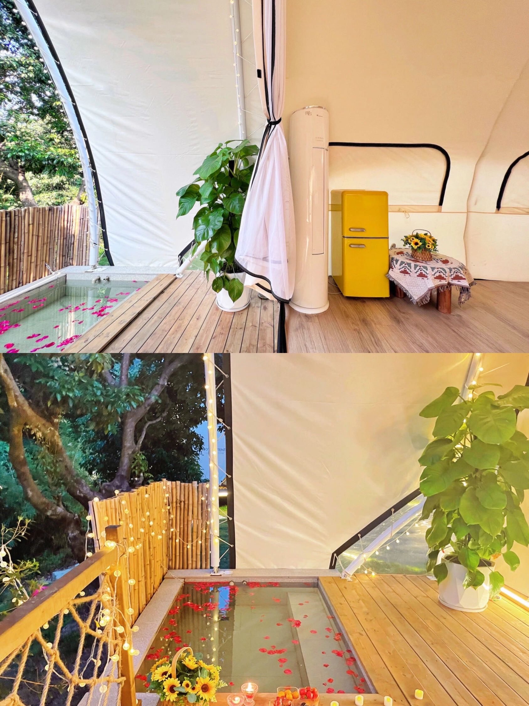 温泉滑梯双床木屋、温泉水上三床木屋、温泉桃林四床木屋(温泉大帐篷8顶+温泉木屋11顶+小帐篷5顶⛺️)