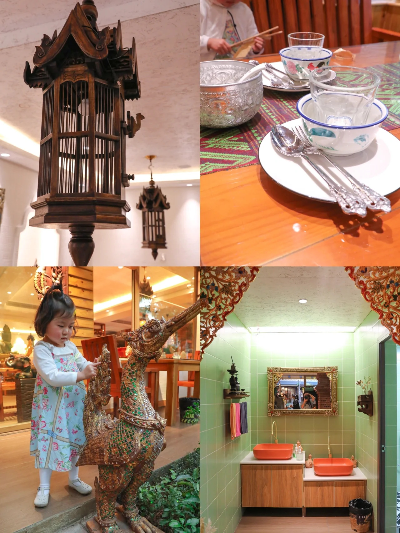 🌴关于环境:在这寸土寸金的商业区,餐厅留出空间打造了自己的庭院景观,庭院和餐厅布置充满了浓郁的东南亚风情。