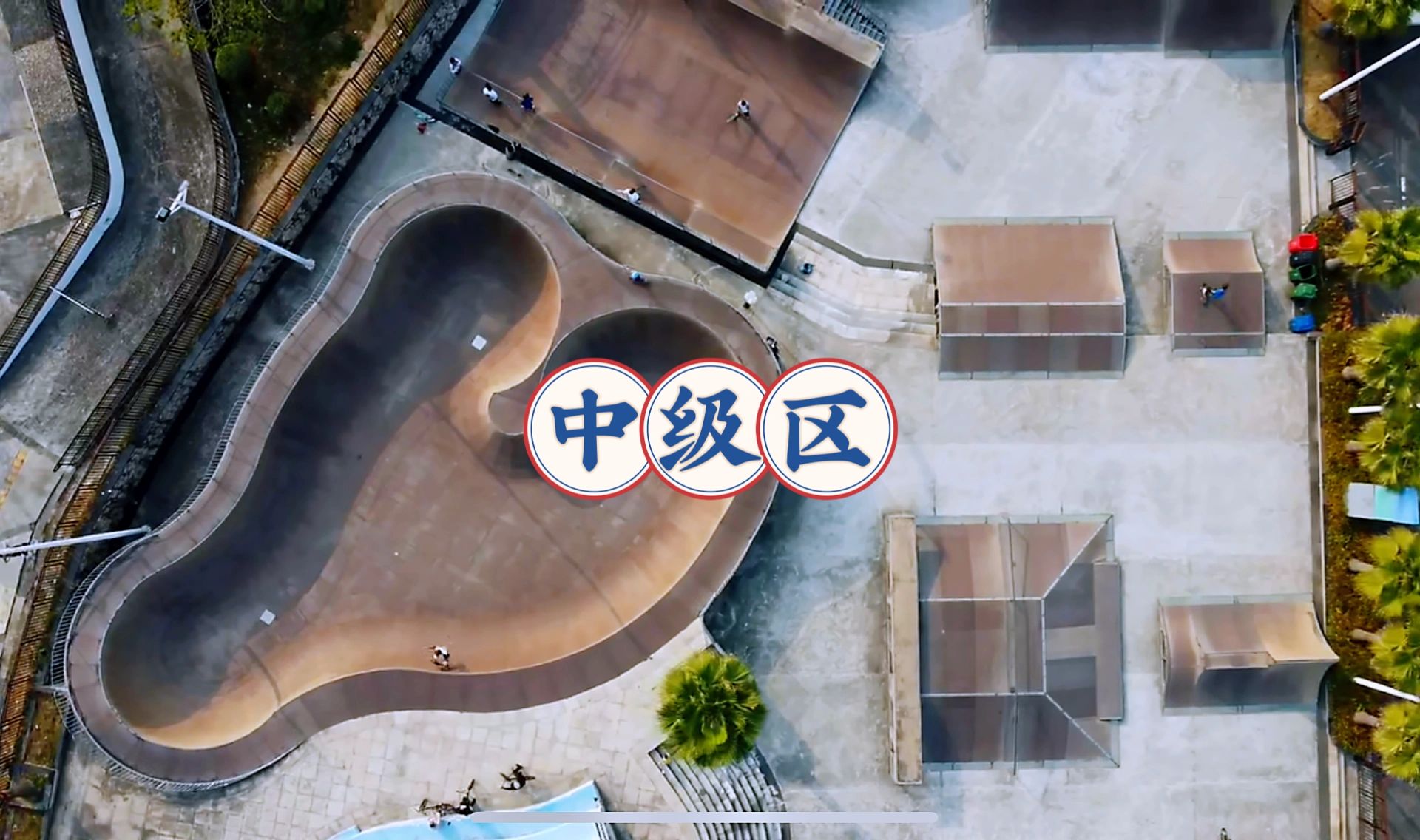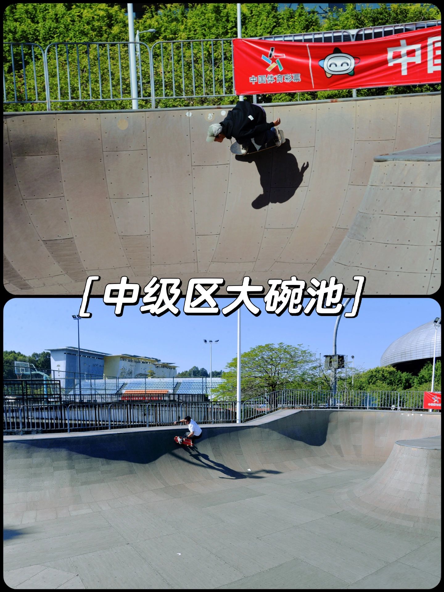 中级区:喜欢刷碗的板友一定不能错过,复合材料的一大一小碗池、水泥材质的花生碗。涵盖碗池、U池、斜面、弧面、街式滑杆等设施.