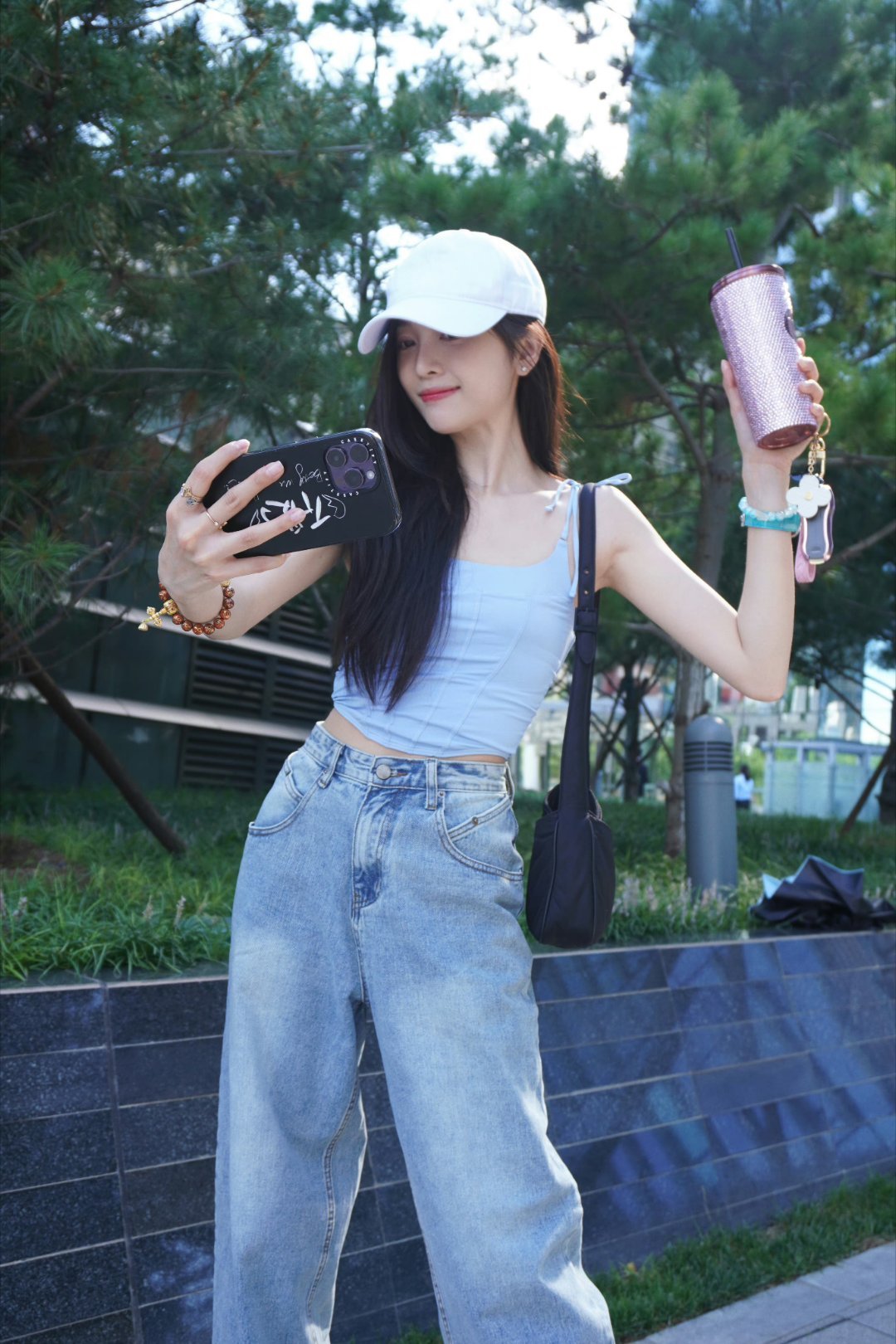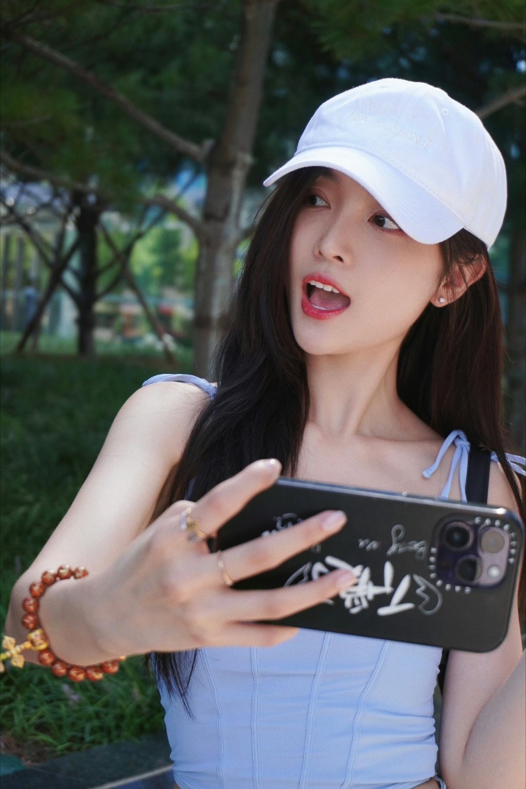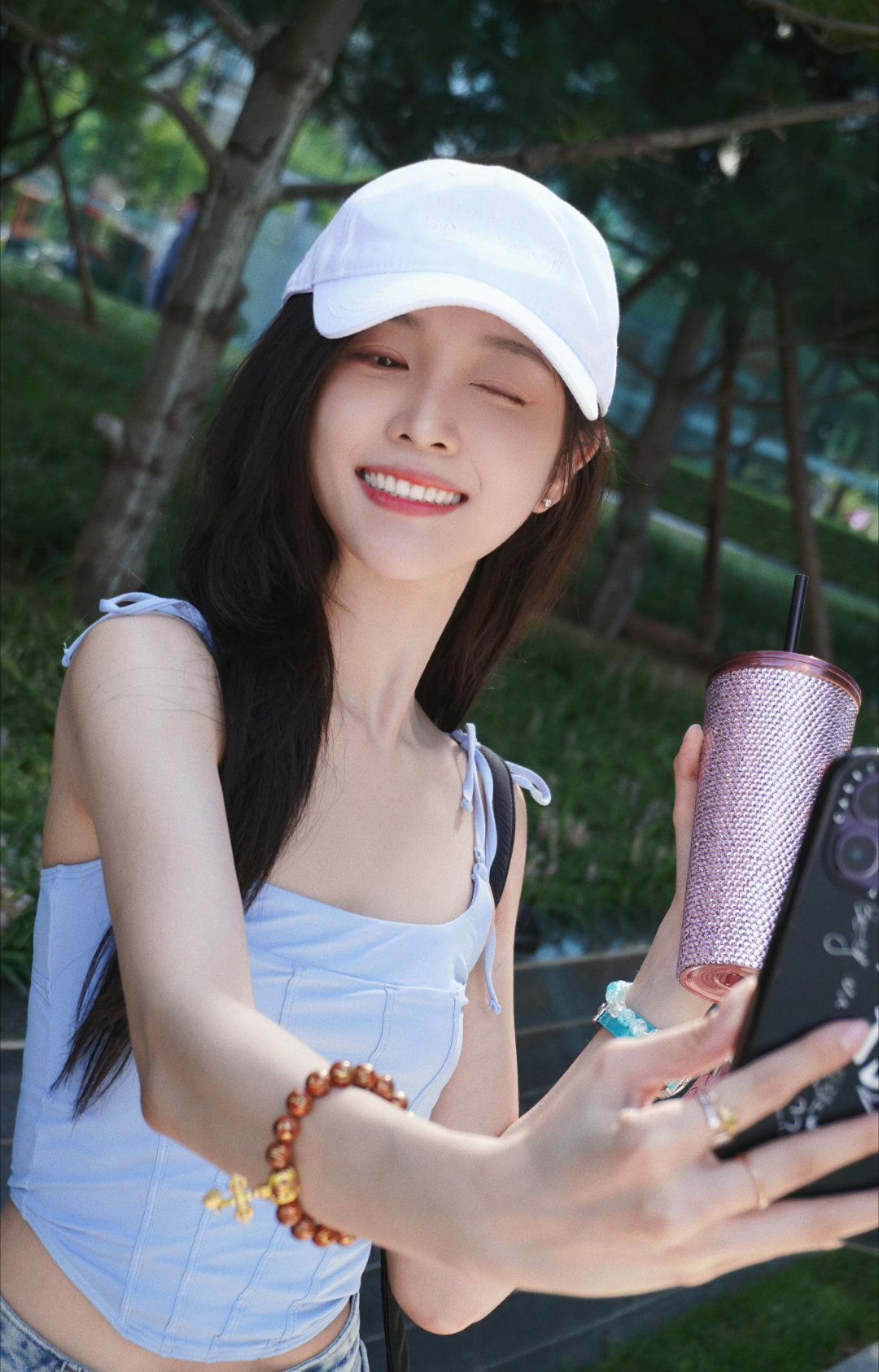 吴宣仪最新私服,戴了雍和宫景泰蓝手串。
