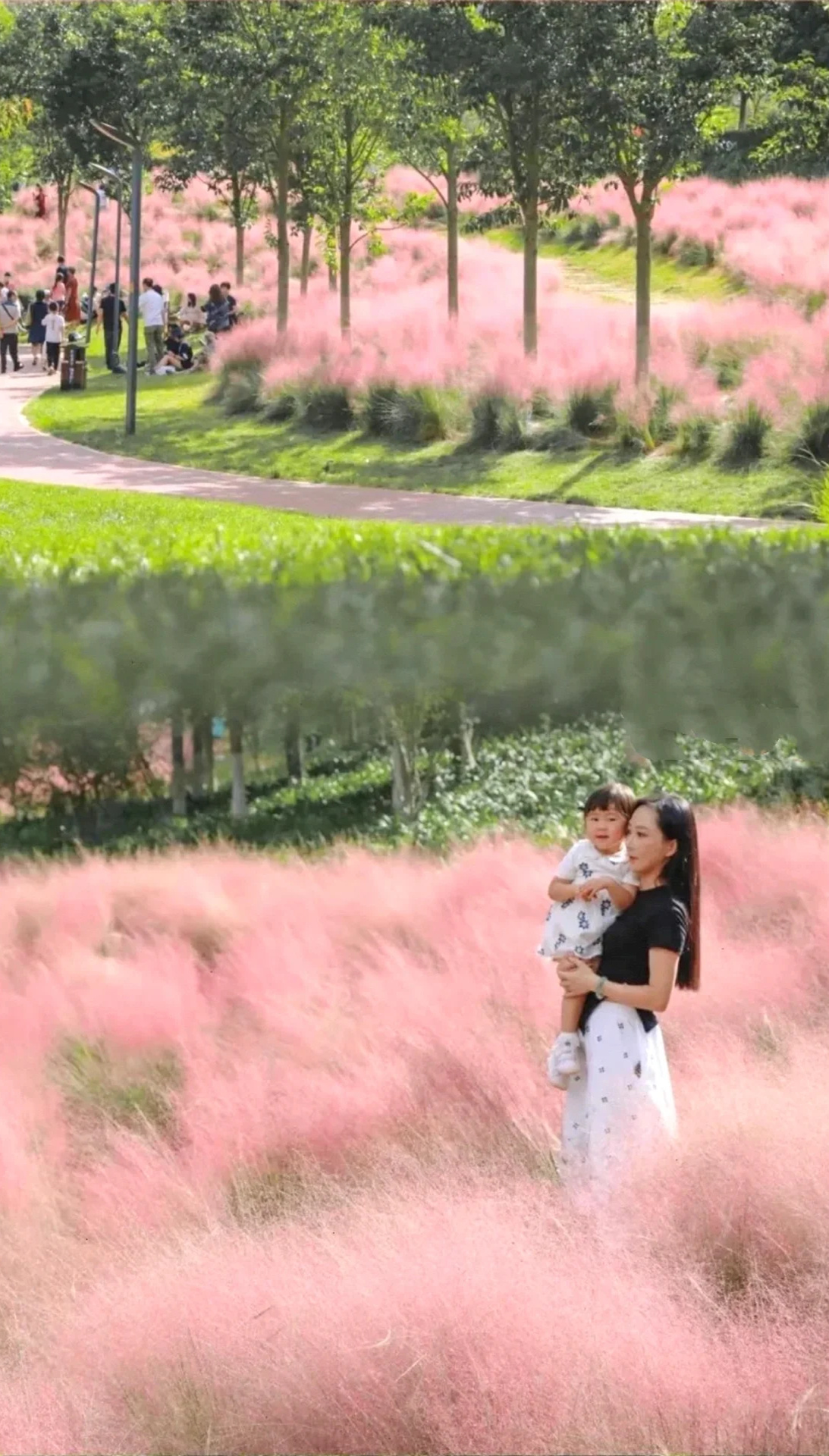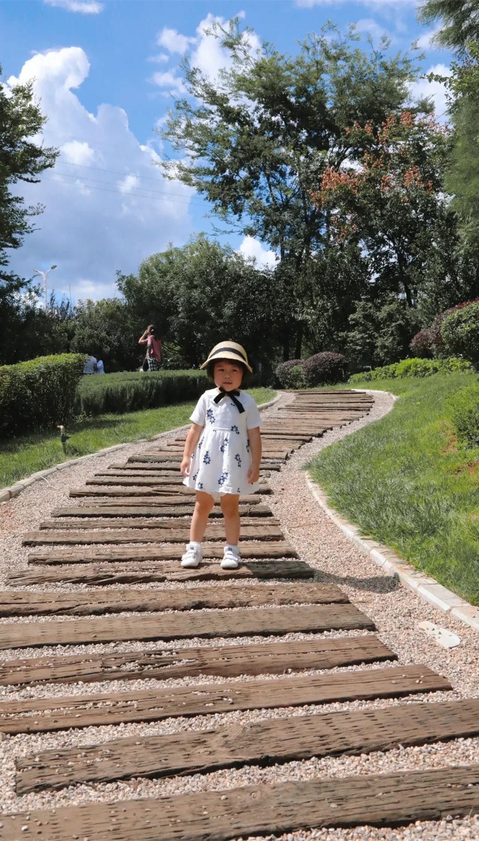 👒进公园到粉黛乱子草区域三分钟的路,但是是碎石上铺设了枕木的小路,不便于婴儿车的推行。