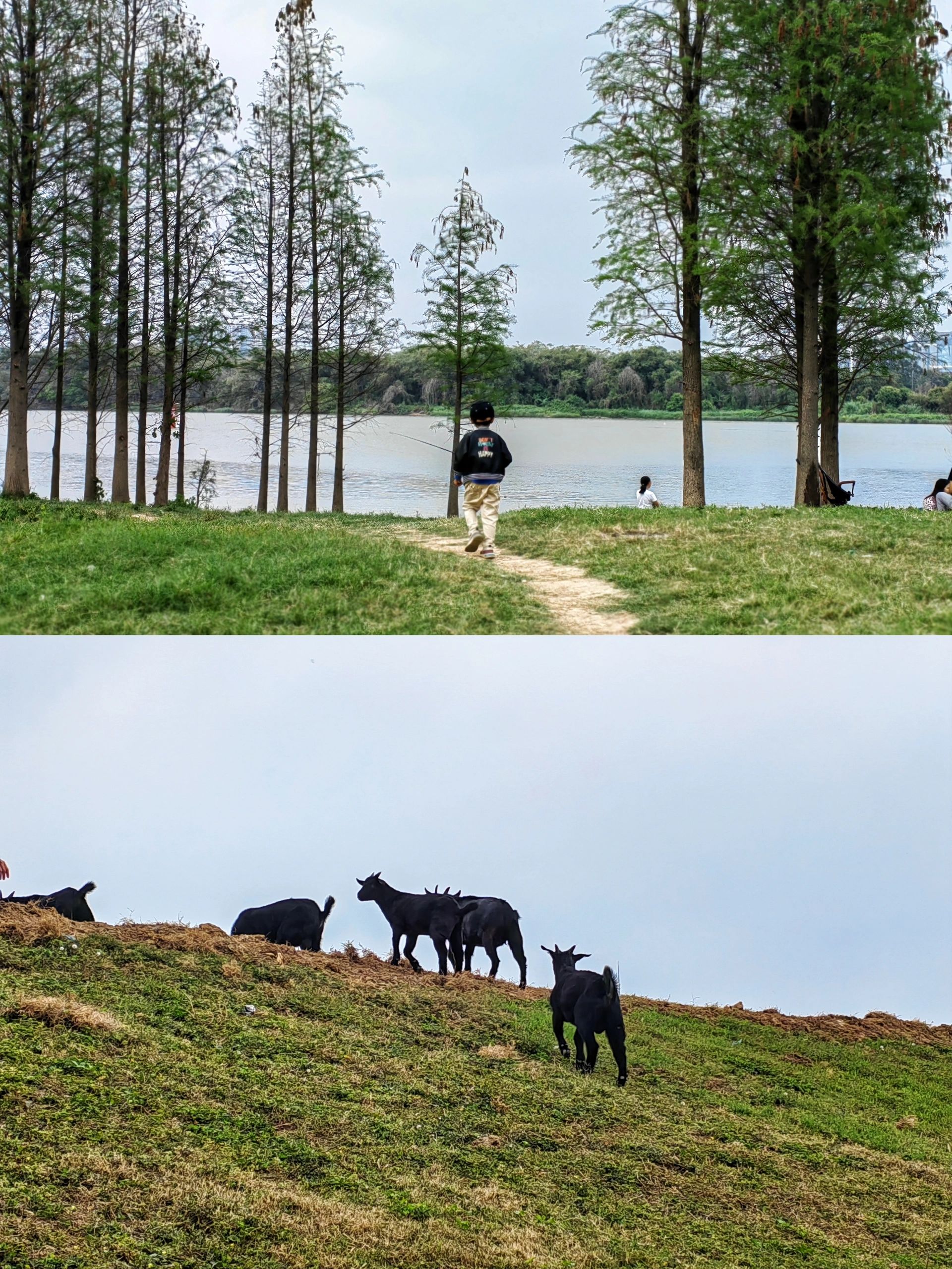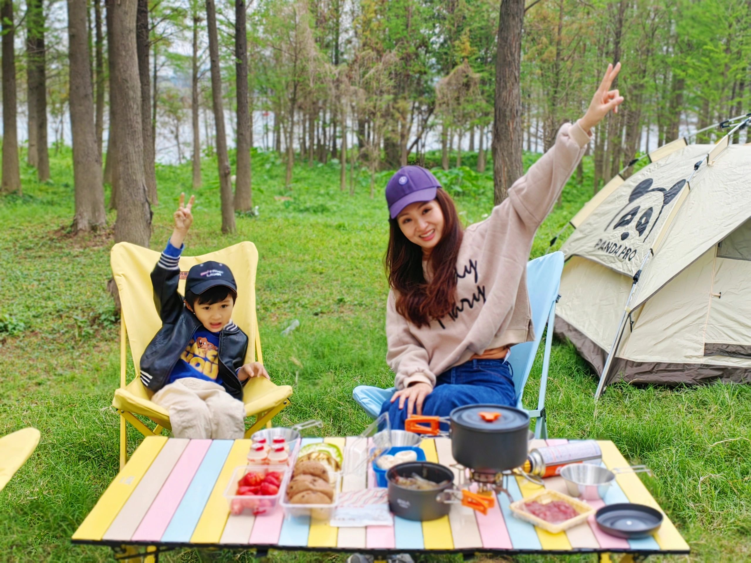 🎣江边可以钓鱼,就在小树林边上,这次露营我们带上长辈,他们的需求都可以满足😄