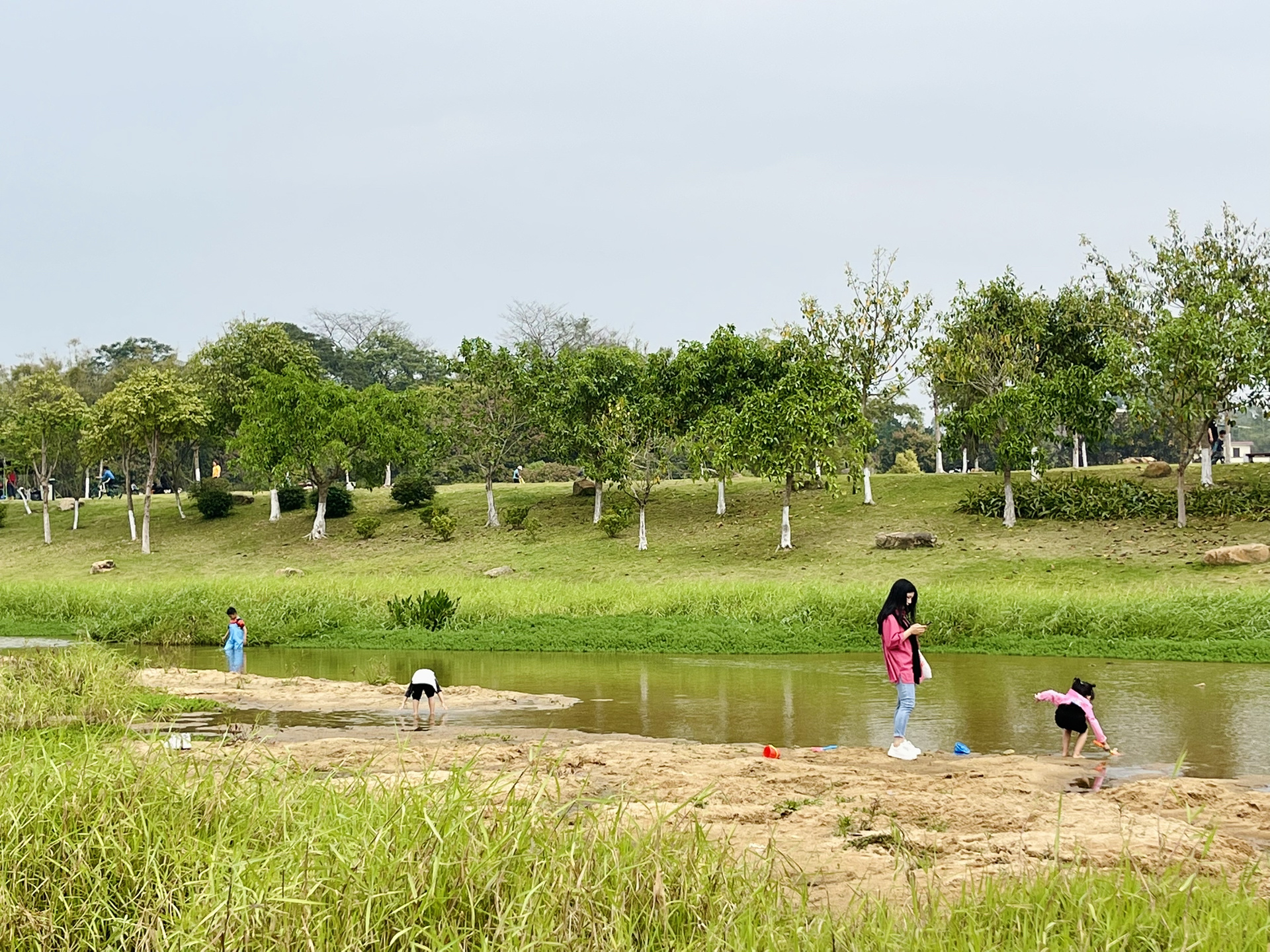 小朋友最喜欢到小溪玩水,捞🐟
