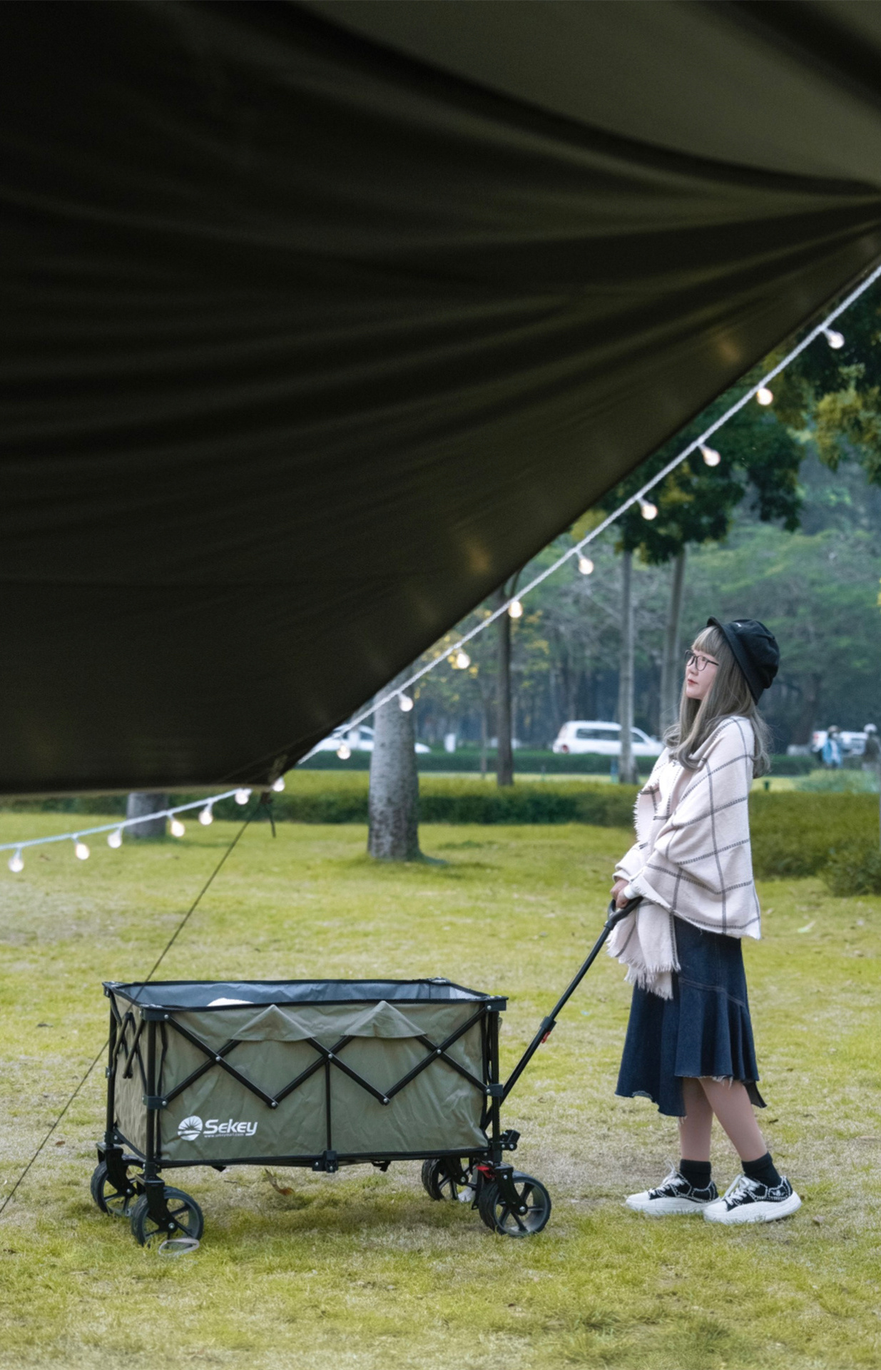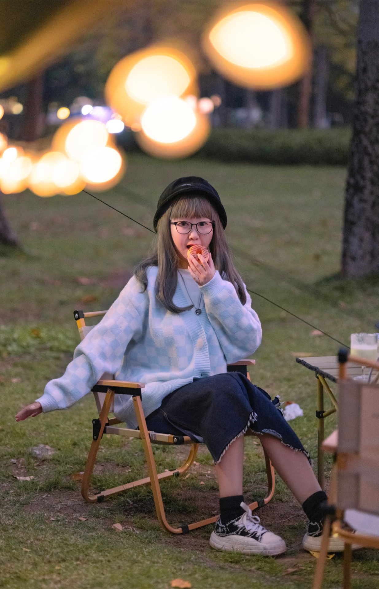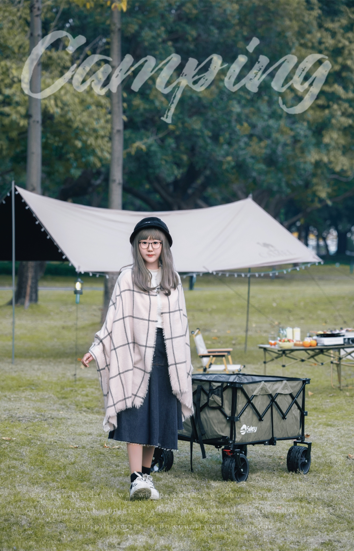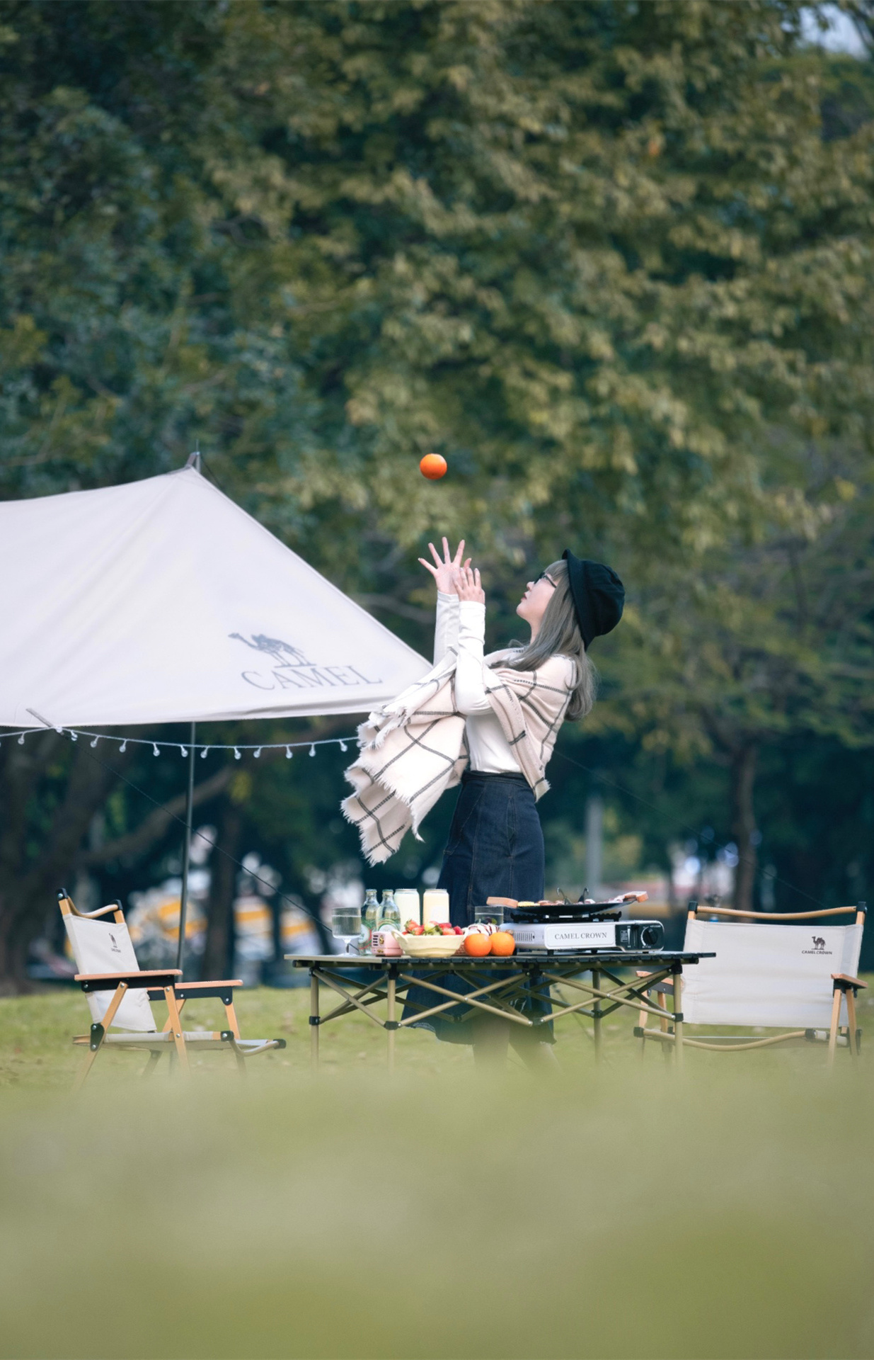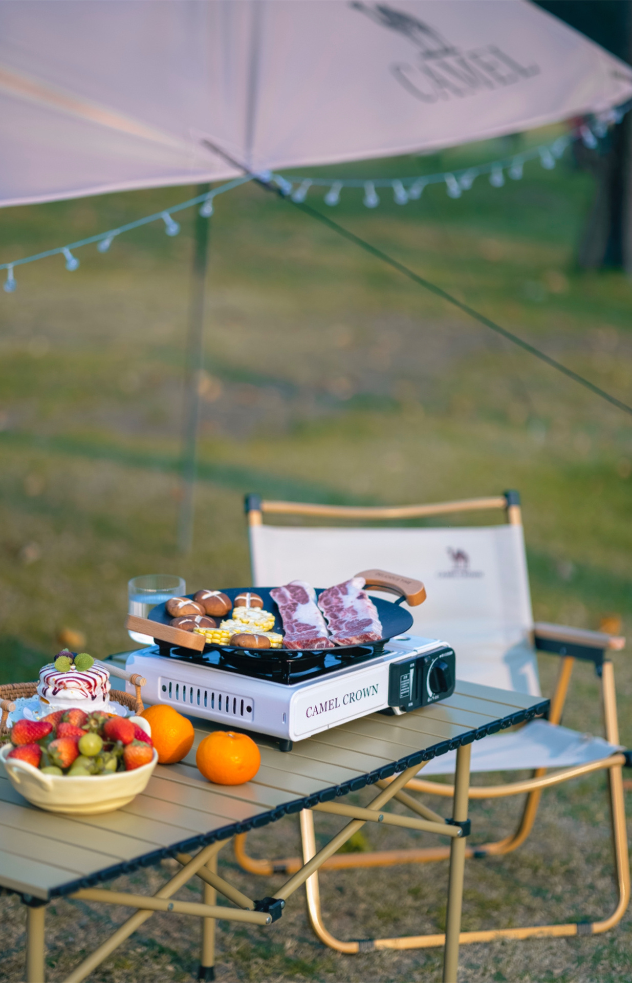 第一次自己搭天幕,没有想象中那么难,骆驼的黑胶天幕、蛋卷桌折叠椅、卡式炉气罐和氛围灯串一套配齐,不要太省心~
