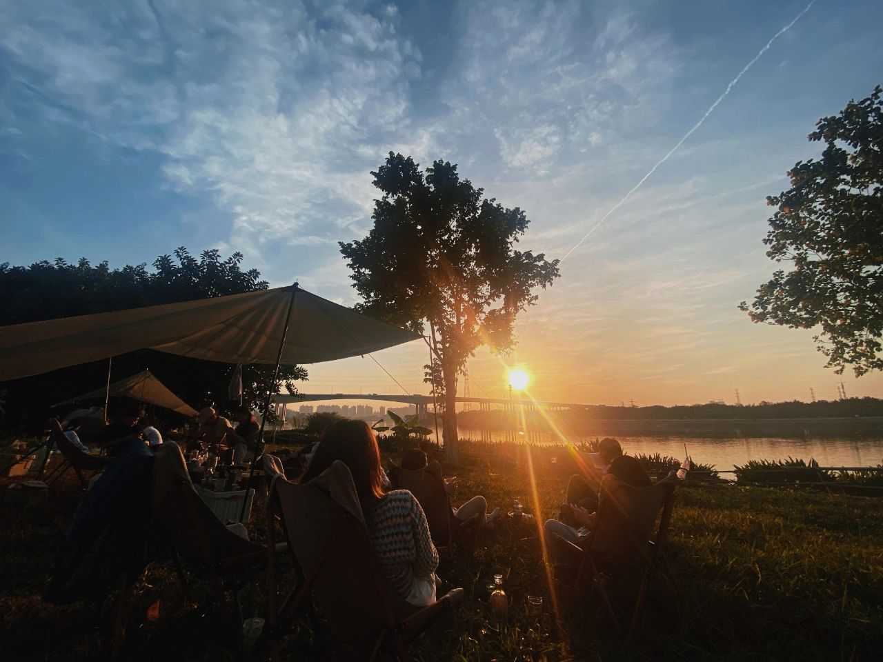 白天阳光非常好,又是在珠江边不会太热,晚霞美丽极了,很适合聚会野餐露营~