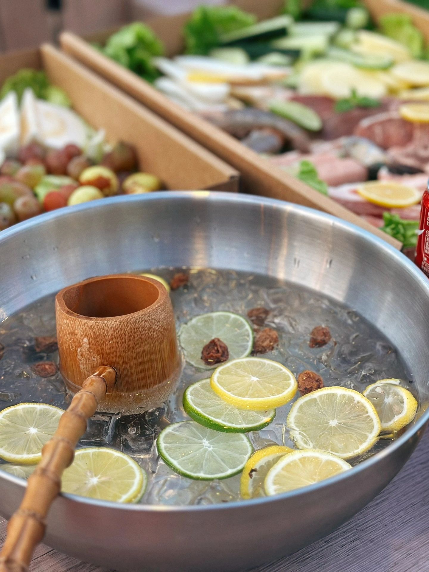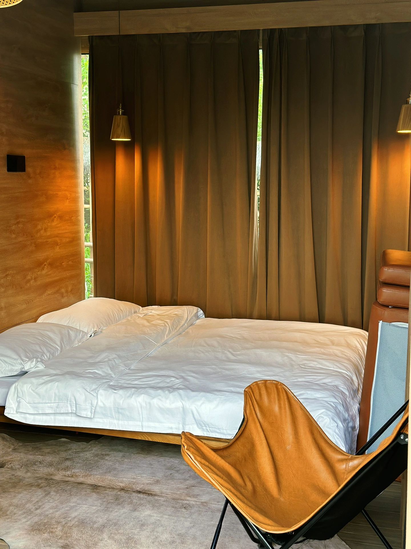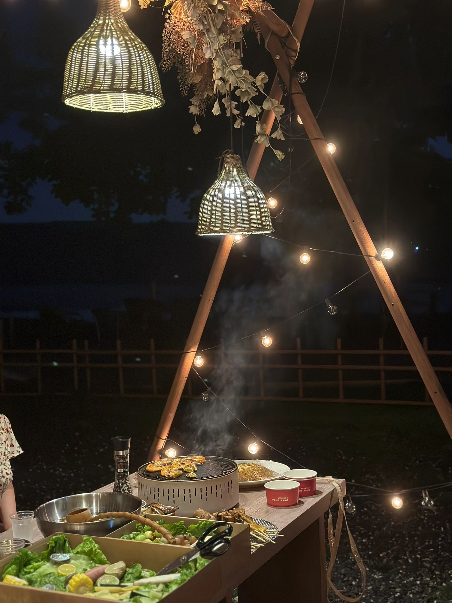 饮食:房间有送矿泉水,喝完也可以再叫管家送,吃东西方面也是需要另外定烧烤套餐或者烤肉套餐,需要提前一天预定