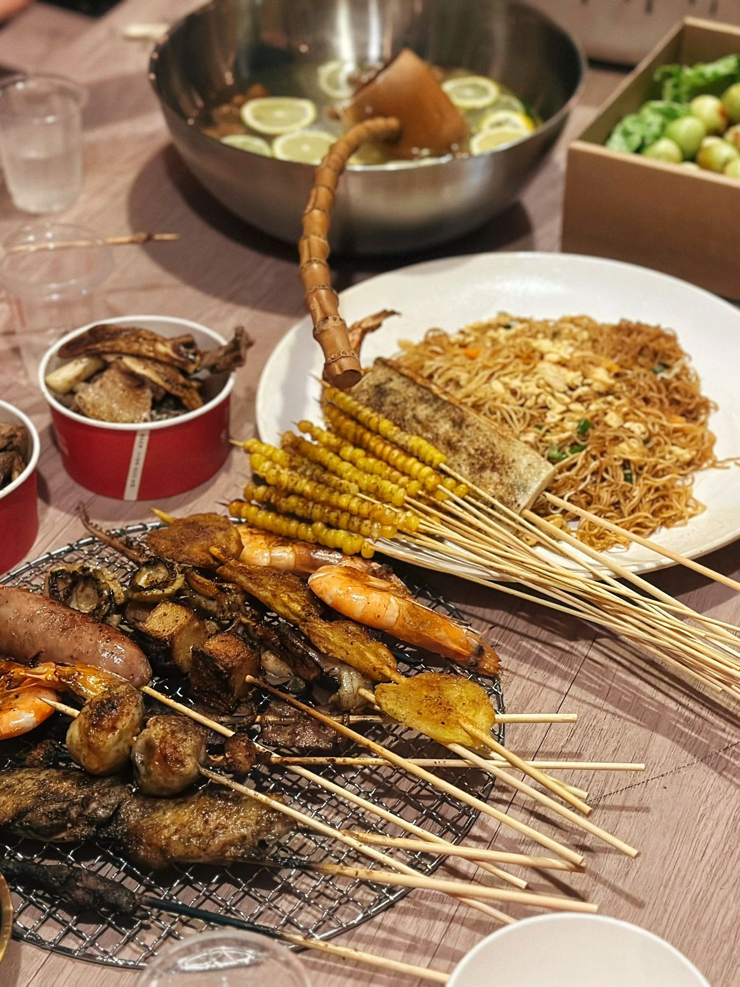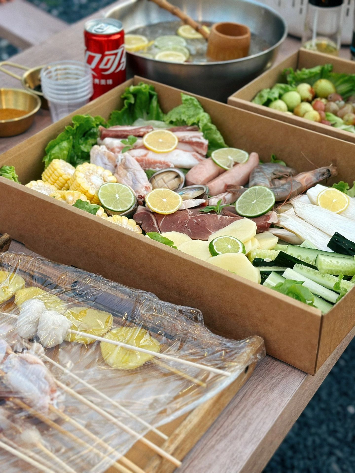 我在VX上直接跟管家定的,烧烤和烤肉是需要自己动手的,没人帮忙烤的,烧烤比烤肉好吃😋。