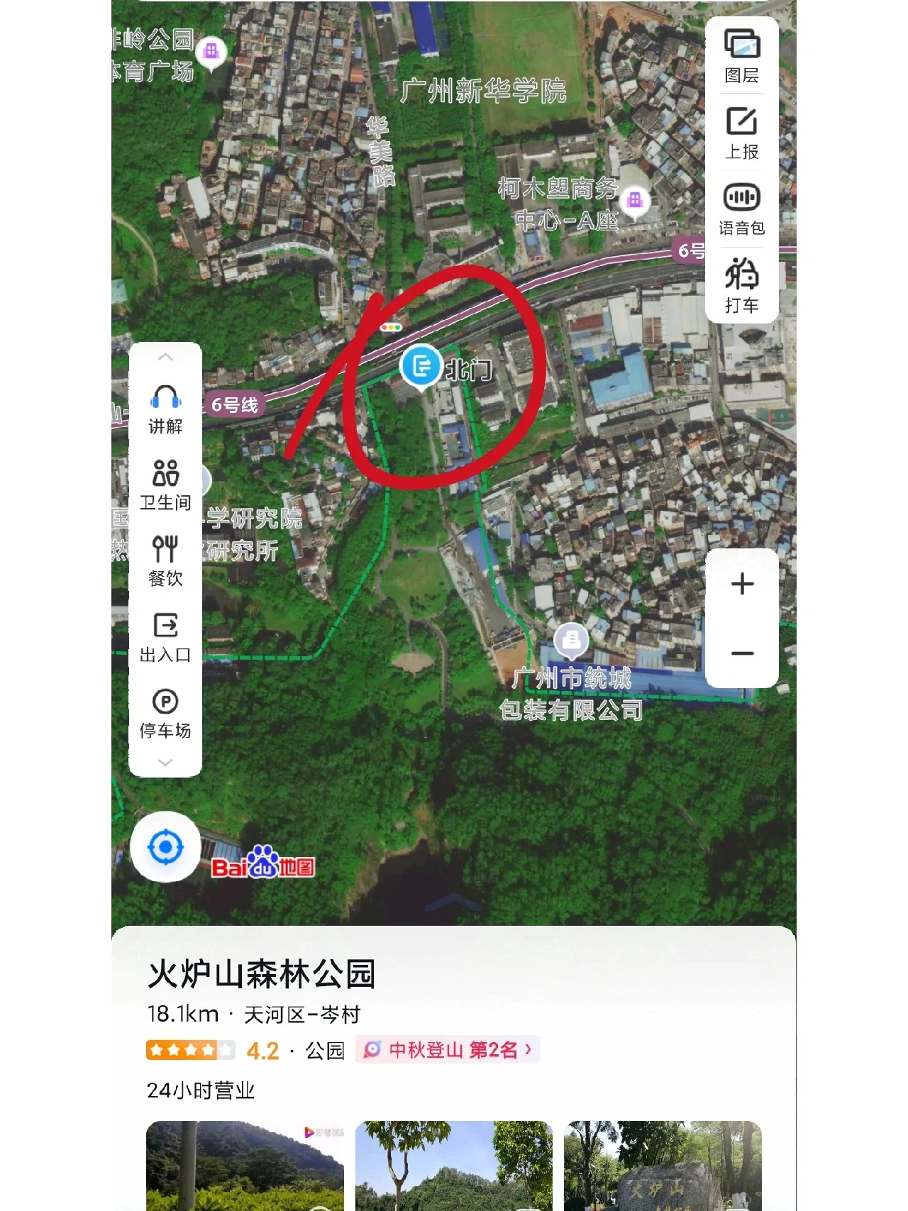 我发起了广州亲子徒步团,我们10多个家庭,从火炉山的北门下山,晚上10点多的时候下山的,发现这个地方还可以露营,据了解这个地方还可以过夜。 地图位置见图4⃣️ ✅在北门门口旁边有卫生间,我想及时过夜的,在这里上厕所冲个凉还是方便的。 ✅另外在北门的旁边还有一个小侧门,这个小侧门是通向北门边上的城中村,村里很热闹,去买个东西在公园里面露营过夜,吃饭还是方便的。