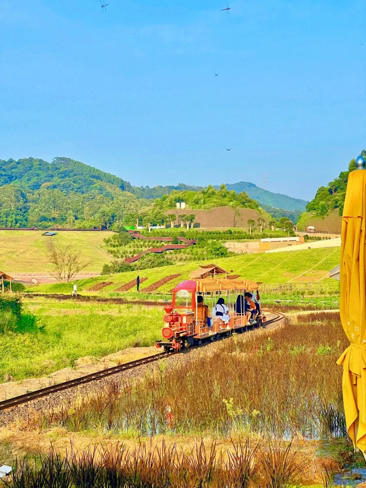 最近天气实在太好啦,周未实在不能浪费蓝天白云的赠子。最近被宫崎验夏天同款滤镜天人山水大地艺术园]刷屏了,拉上好姐妹就来打卡了。 广州自驾大概1.5小时车程,可以打卡里面的所有景点啦,晚上还可以烧烤。 园区实在太美啦,随手一拍都是手机壁纸 打卡了几个景点都非常美腻。 诺诺兔子车。:园区里的穿小车,也真的太太太可爱了,都有固定的上下车点,随手抓拍一张太可爱了 登科桥台:度假感满满,出片满分婴,倒转还是爱心 七号营地 的:除了美丽的景点,带上各种食物道具来露营也是很不错 地址:天人山水大地艺术园