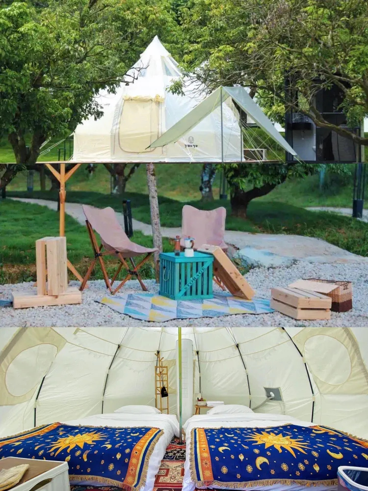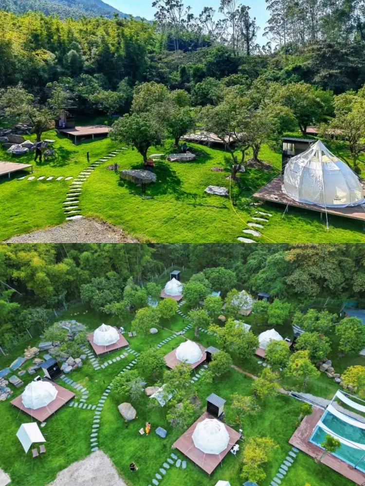 坐落于白水寨瀑布,天然温泉,绿色氧吧这里山恋桑翠,瀑布长流,四季可游十顶帐篷分布于林间,泉水泳池无限畅游还是宠物友好营地喔