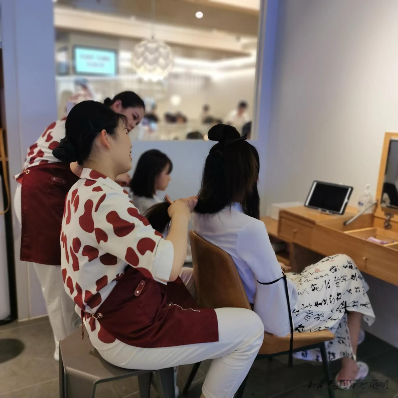 他家号称炒菜界的海底捞,服务别提多好了,来吃饭的客人都可以免费编小辫儿,记得让店员小姐姐帮忙排号,人很多~ ▫️ 店员小姐姐的手艺一个比一个好,编的快而且还会根据头发长短来设计搭配,上一次编小辫还是小学了吧哈哈哈哈!搭配的粉色和我上衣的颜色还挺配,甜酷风轻松 ▫️ 他家拍照也出片,门口的玻璃墙、洗手台的地方,还有店里的logo墙,光线像打了补光灯,拍出来可好看了,洗手台的用品也很高大上,大牌香水、口红可以随时补妆 ▫️ 菜品味道真的不错,虽然是炒菜,但是食材选择上很用心,味道当然好!店员还给耐心地介绍了,他家烤鸭、毛血旺、尖椒皮蛋擂茄子、东北大拉皮、新疆红柳羊肉串我都超喜欢!