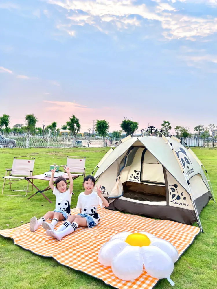 亲子露营,帐篷最好带自动帐,轻便好拎,一人完成,防水防晒防蚊,该有的功能都有了!