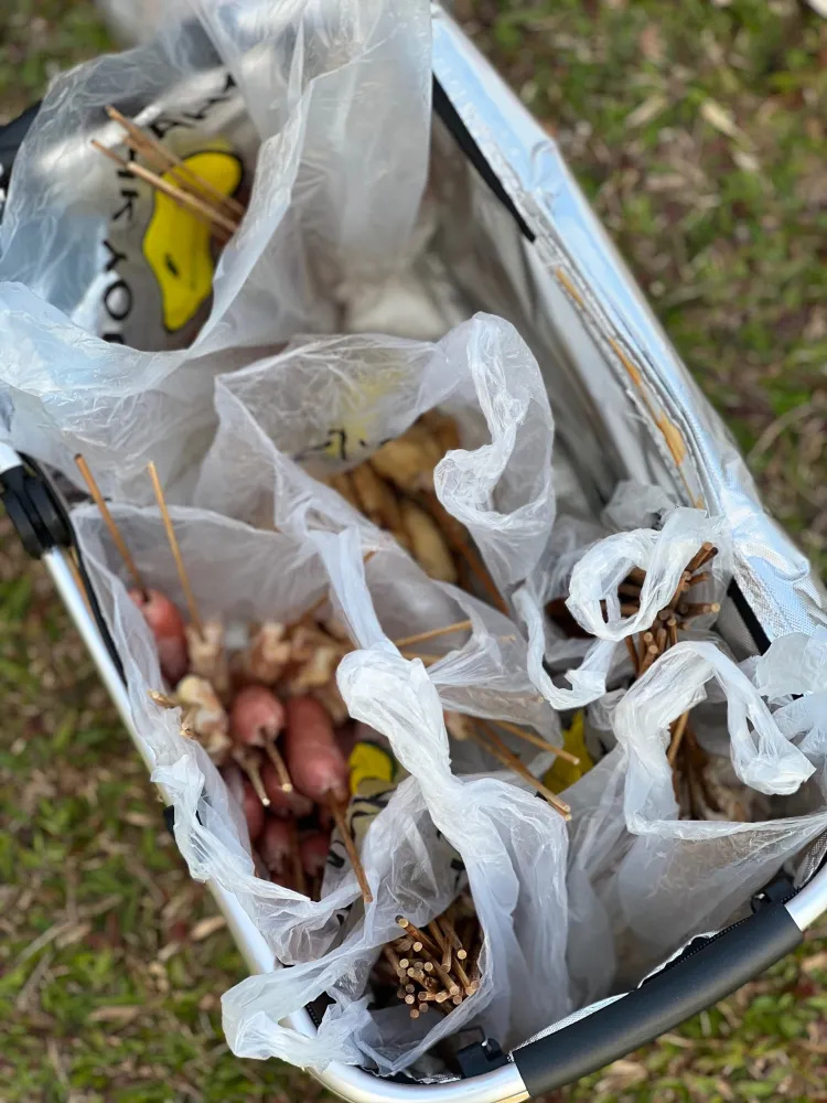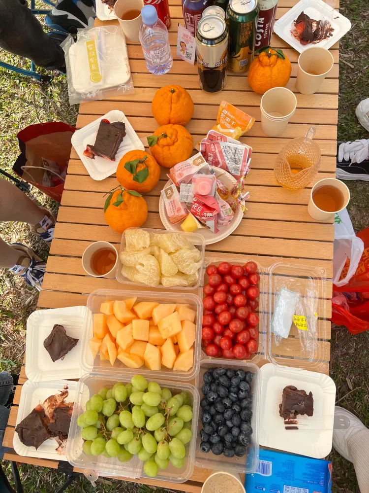 带上帐篷、零食、水果、饮料去露营~
