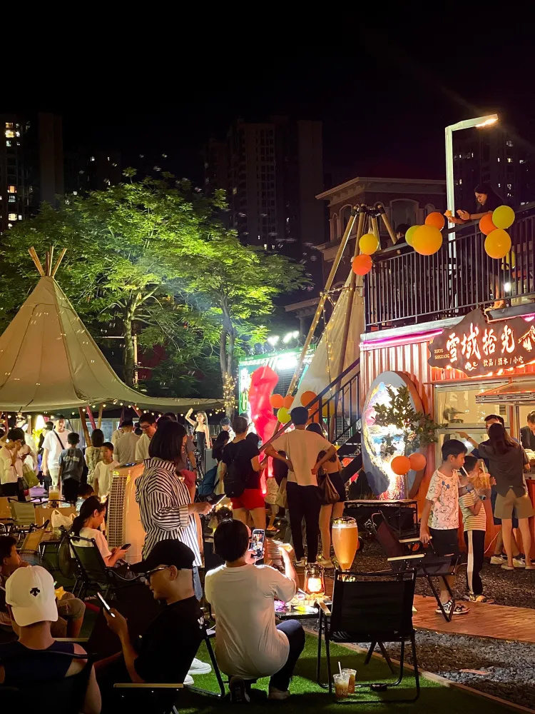 就在广州融创茂滑雪场附近开了一个露营地 滑完雪的宝子顺道可以喝点冷饮解署一夏 夏天跟好友一起去真的太浪漫辣~ 这里有烧烤,啤酒,一各种喝的吃的. 晚上还有乐队表演 整个营地有乐队表演气氛给力~ 熙熙攘攘的人流热闹的很. 打卡拍照a氛围感十足哟~ 傍晚时分天空很蓝,微风轻轻吹过,坐在营地听着音乐~ 享受这一刻的美好时光~感觉整个人都自由放松 集美们一年四季适合露营的季节来了,见一面吧在这30°的好天气~ 营地名称:广州融创茂雪域拾光城市露营 雪域拾光