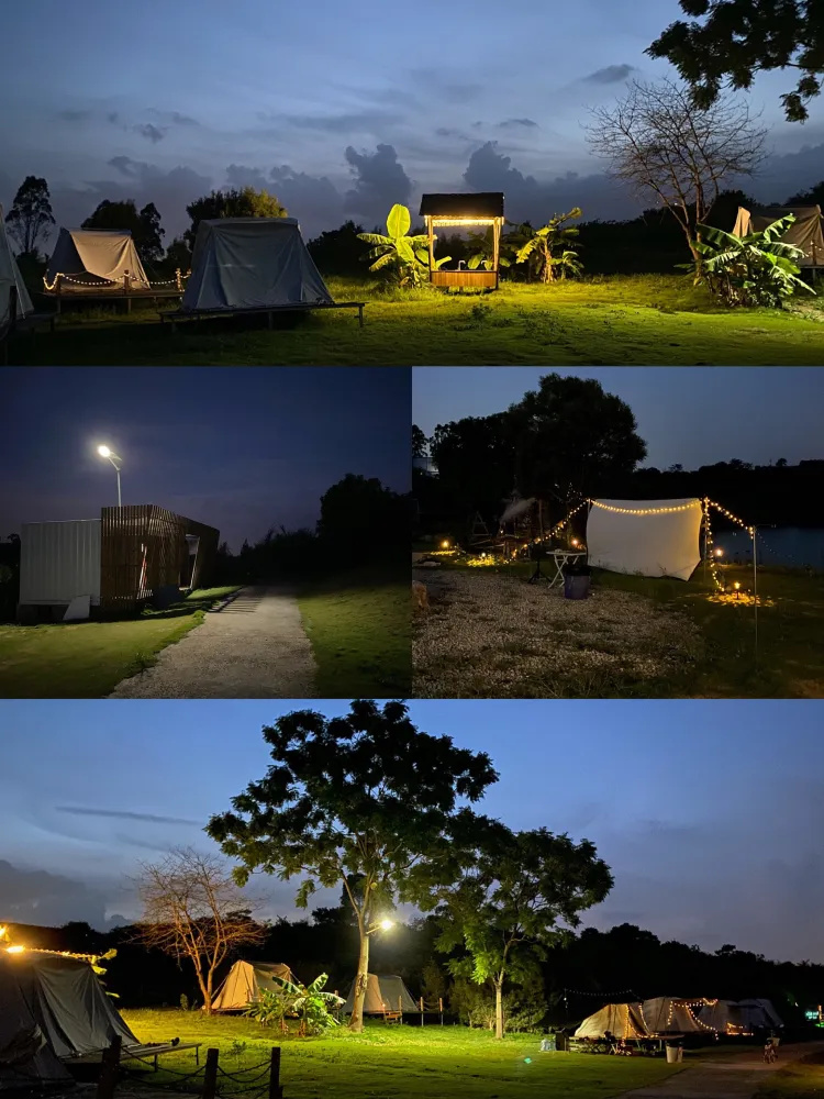 设置了餐厅、篝火区、户外电影区。