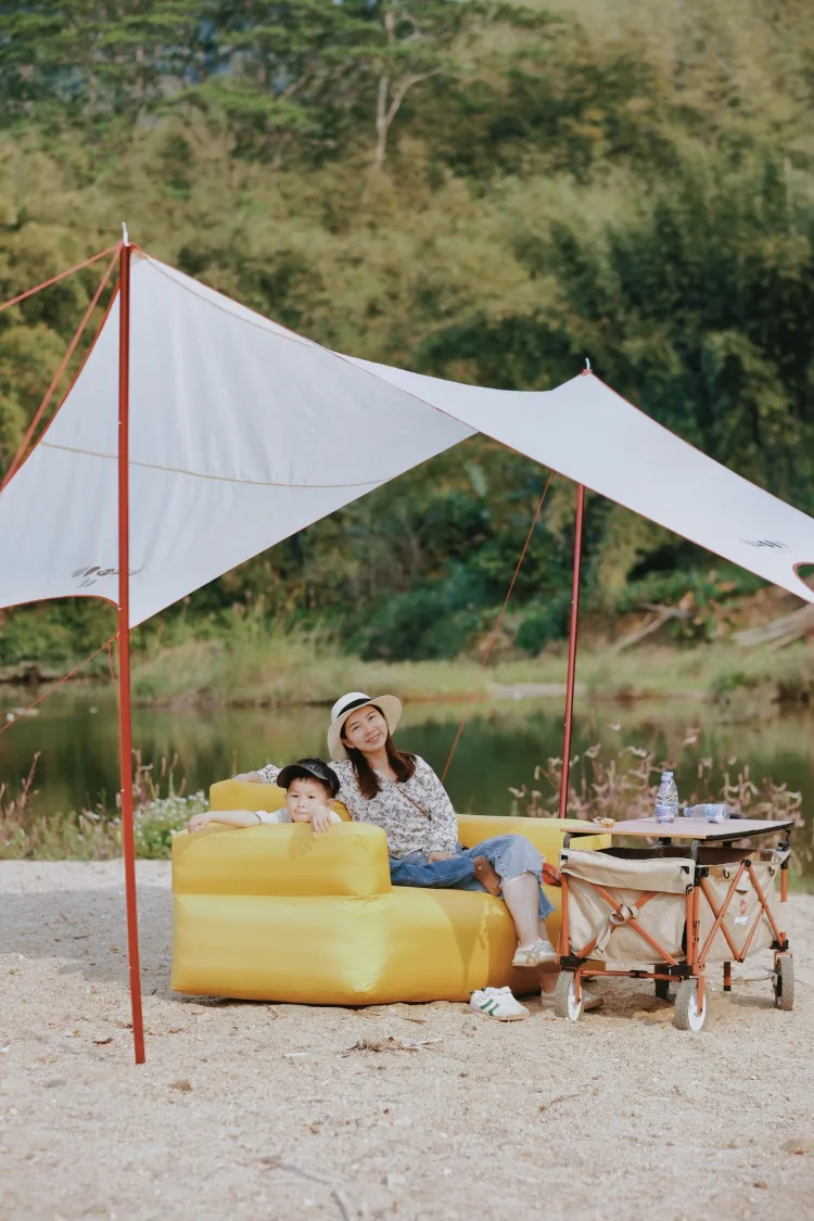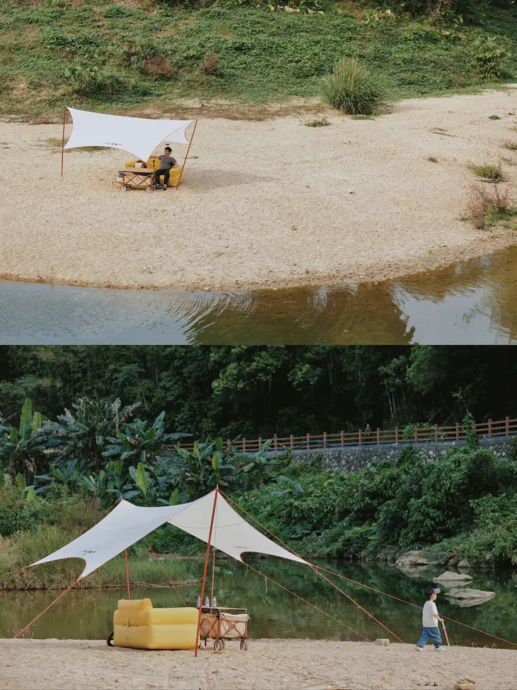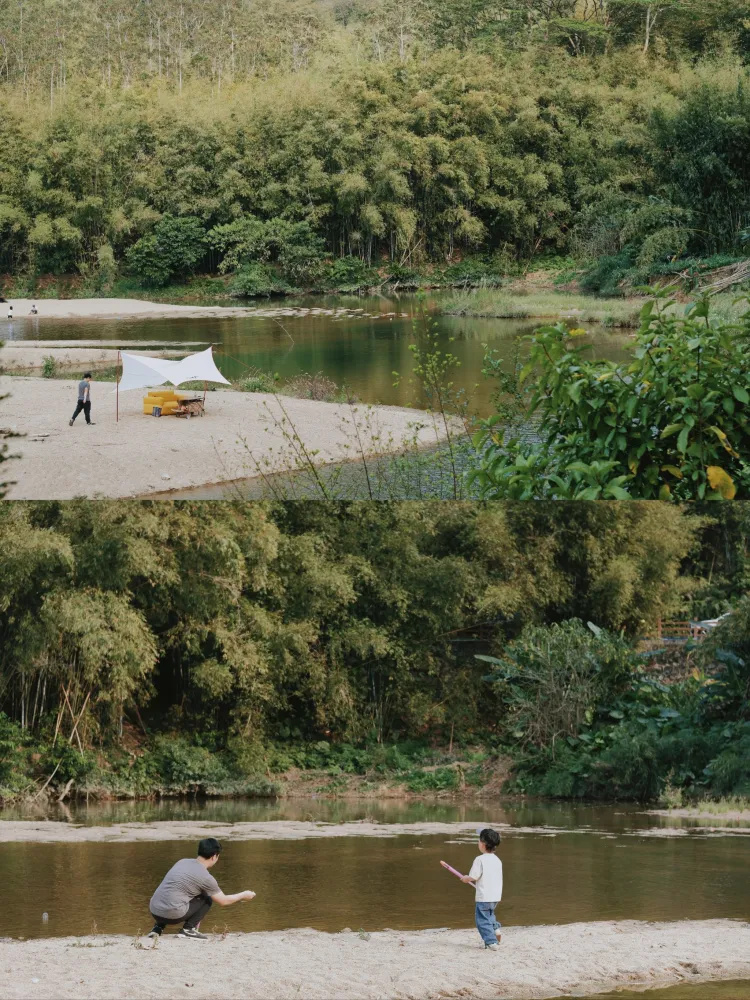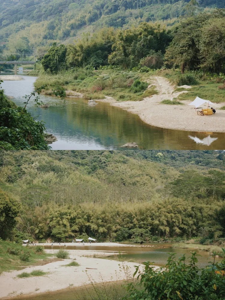 这次分享的地方是在增城,这里有竹林绿地可以骑车,有河床浅滩,有草地一附近还有 厕所,沙地上还能用明火