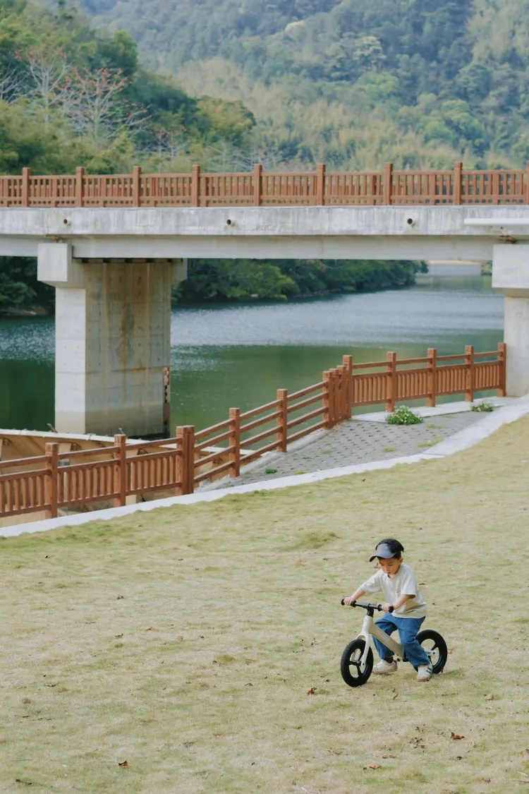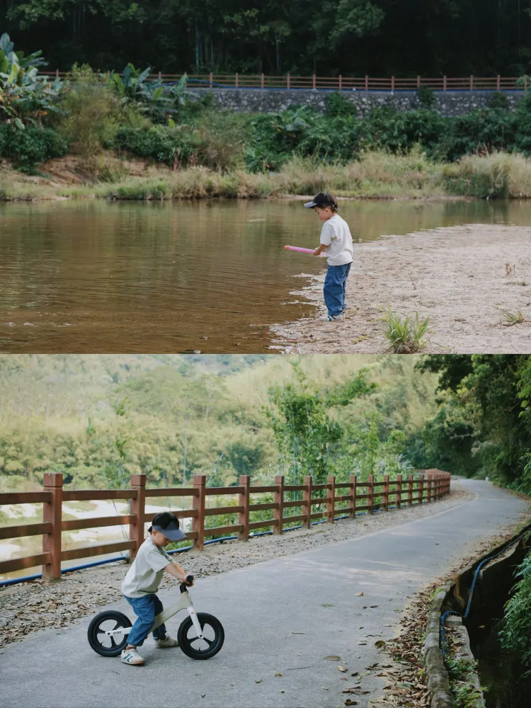 带上平衡车,避好的平衡车骑起来特别稳,哥哥可以在鹅卵石路上炫!沿路还有溪流,带上渔网还能抓小鱼小虾呢!