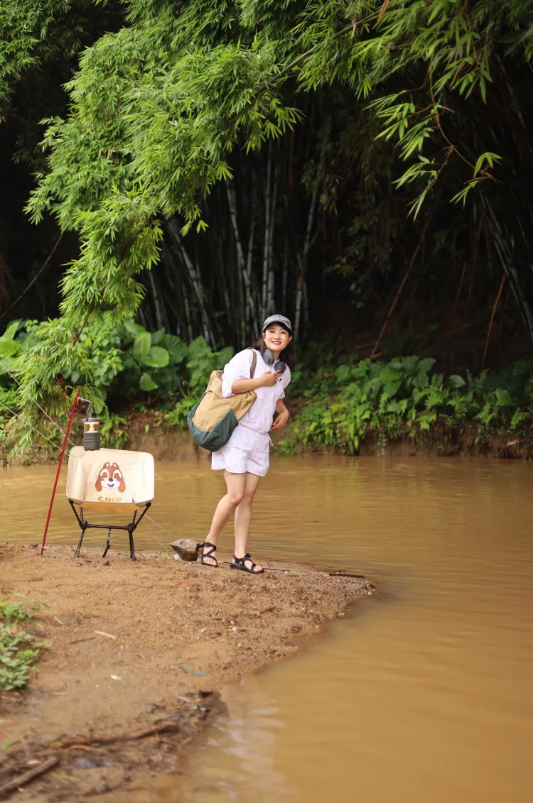 栈道下方左右两边都可以玩水,对岸是竹林。