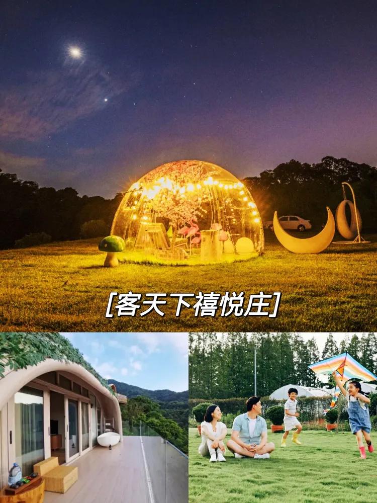 营地在一片湖光山色之中,来到这里,可以在大草坪野餐,在无边际泳池畅游,在星空屋观星,住进山林中。