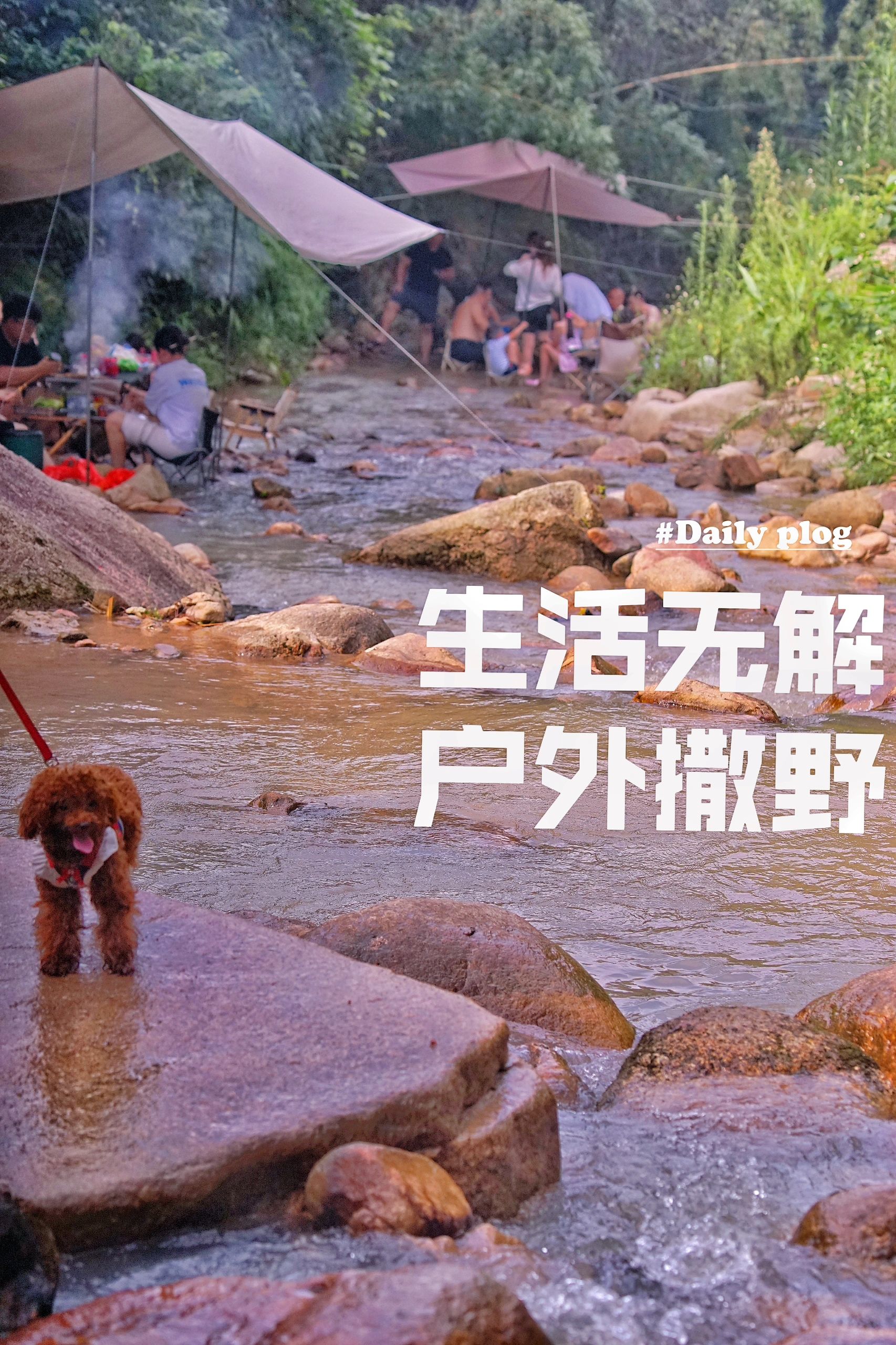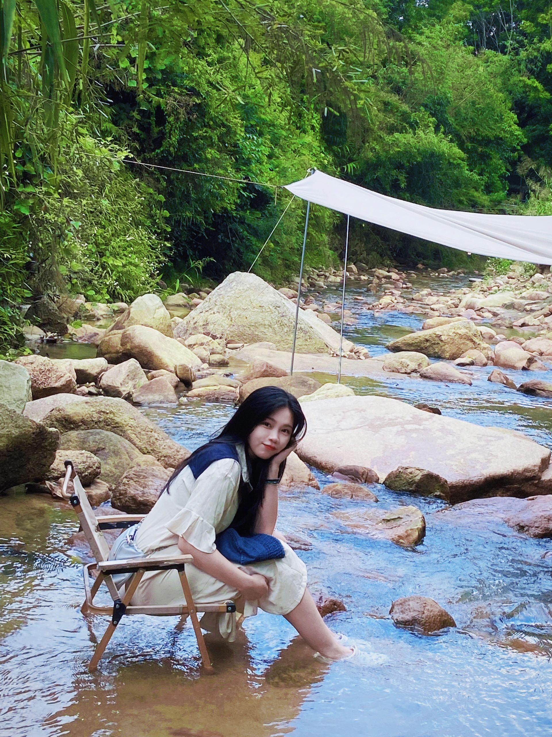 🈯️溪水露营🈯️:地下是沙子,在水里放上蛋卷桌和椅子,边泡jio边玩水!