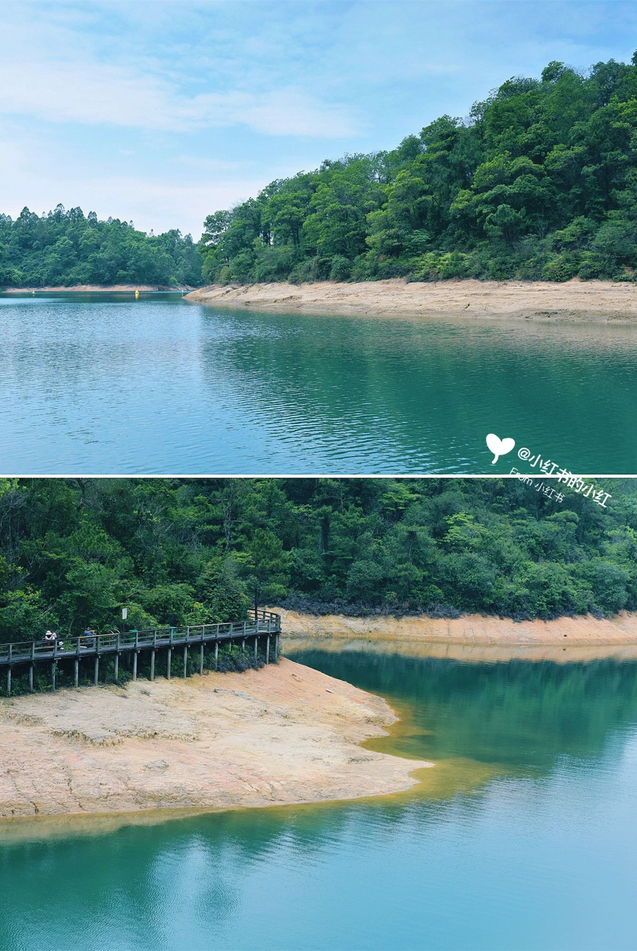 环湖栈道虽然只能环到其中一小部分龙爪,但路线设计合理,大约11公里,强度适中,风景优美,水质清透、游鱼可见。
