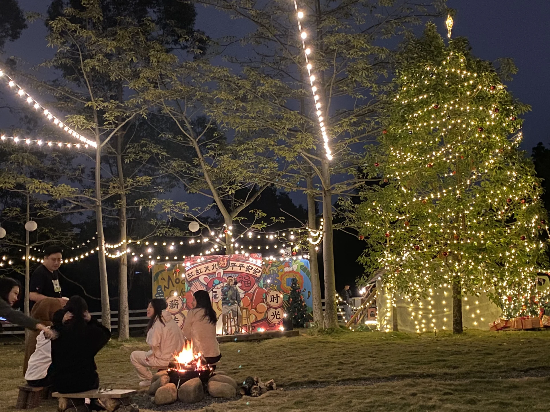 ✅装备齐全,不用带任何设备,也不用搭帐篷,有篝火,露天投影电影🎬,营地还有个小舞台,唱歌设备🎤很齐全,户外k歌氛围拉满了!