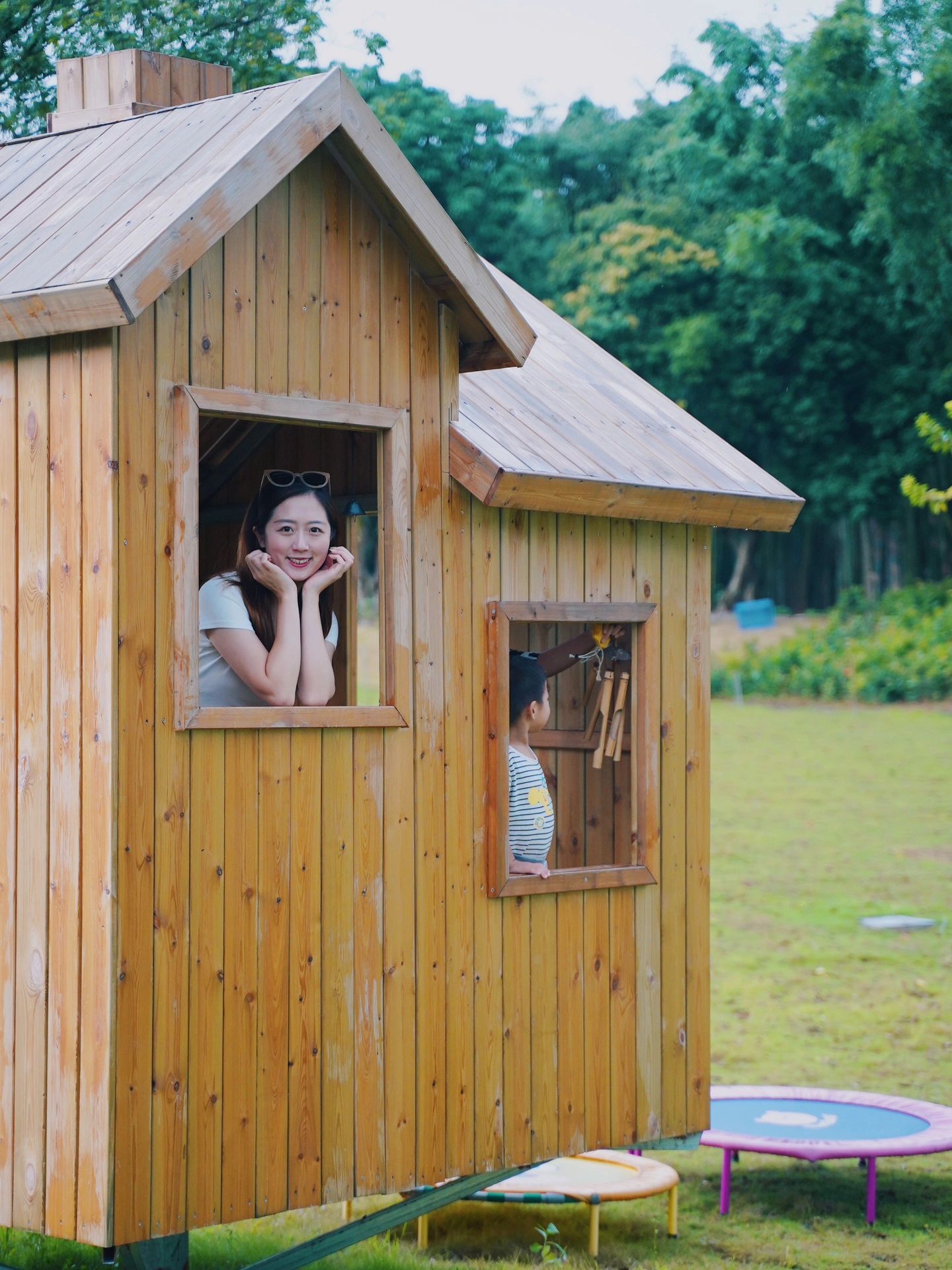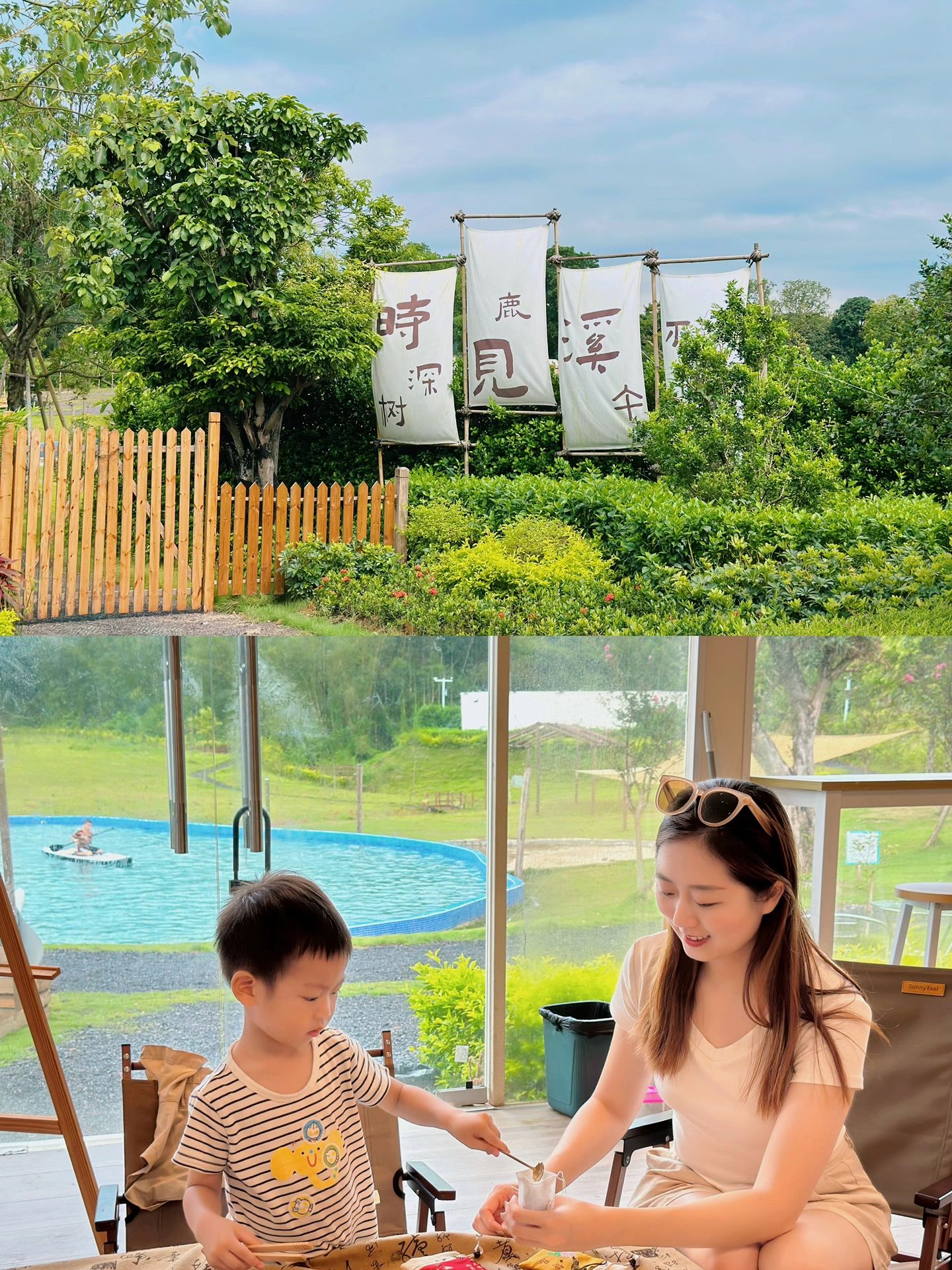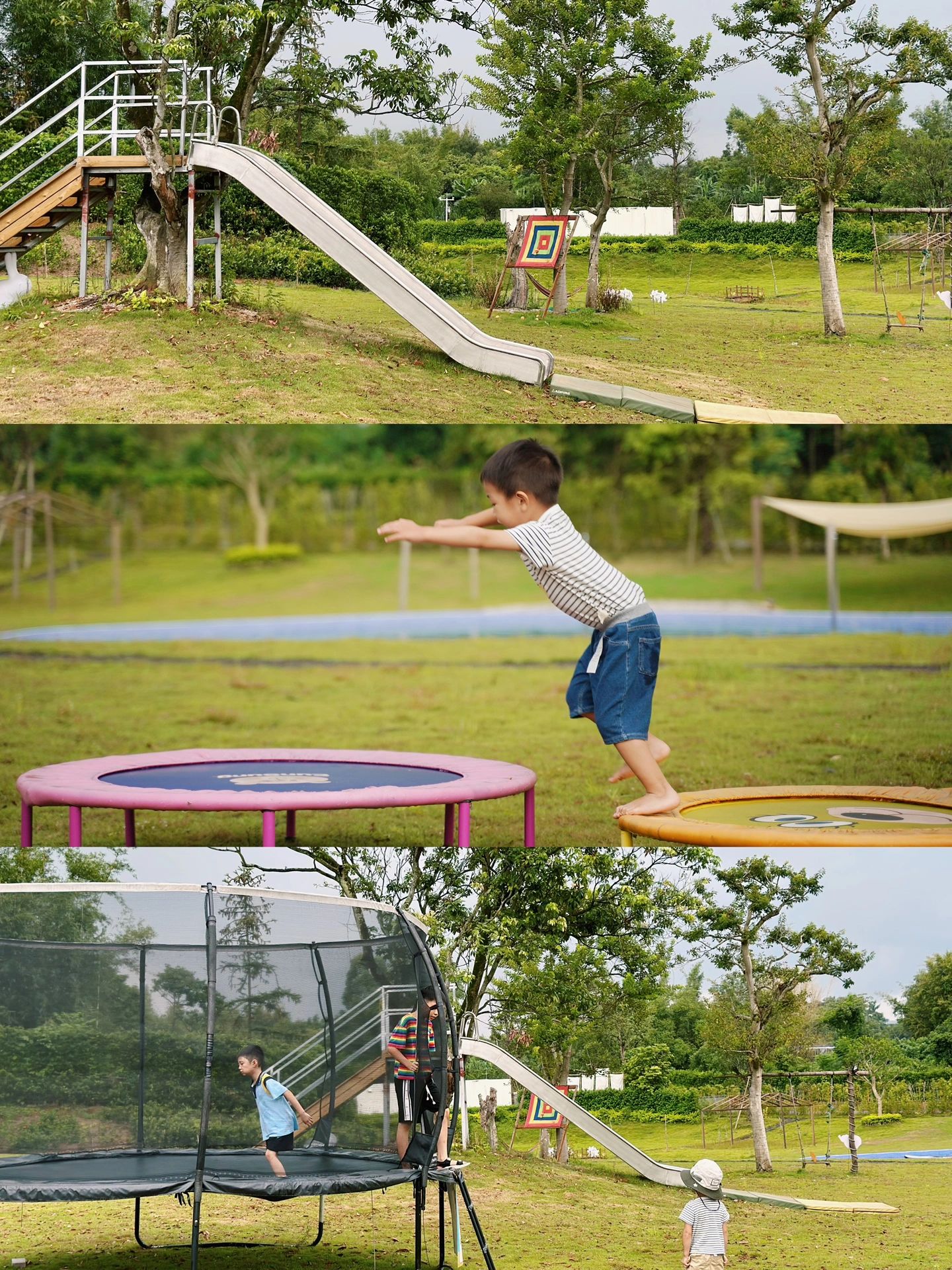有泳池,小朋友可以游泳玩桨板;有滑滑梯、秋千、蹦床、滑草等游乐设施;还可以喂喂金鱼,小兔子和鹅🐰🦢