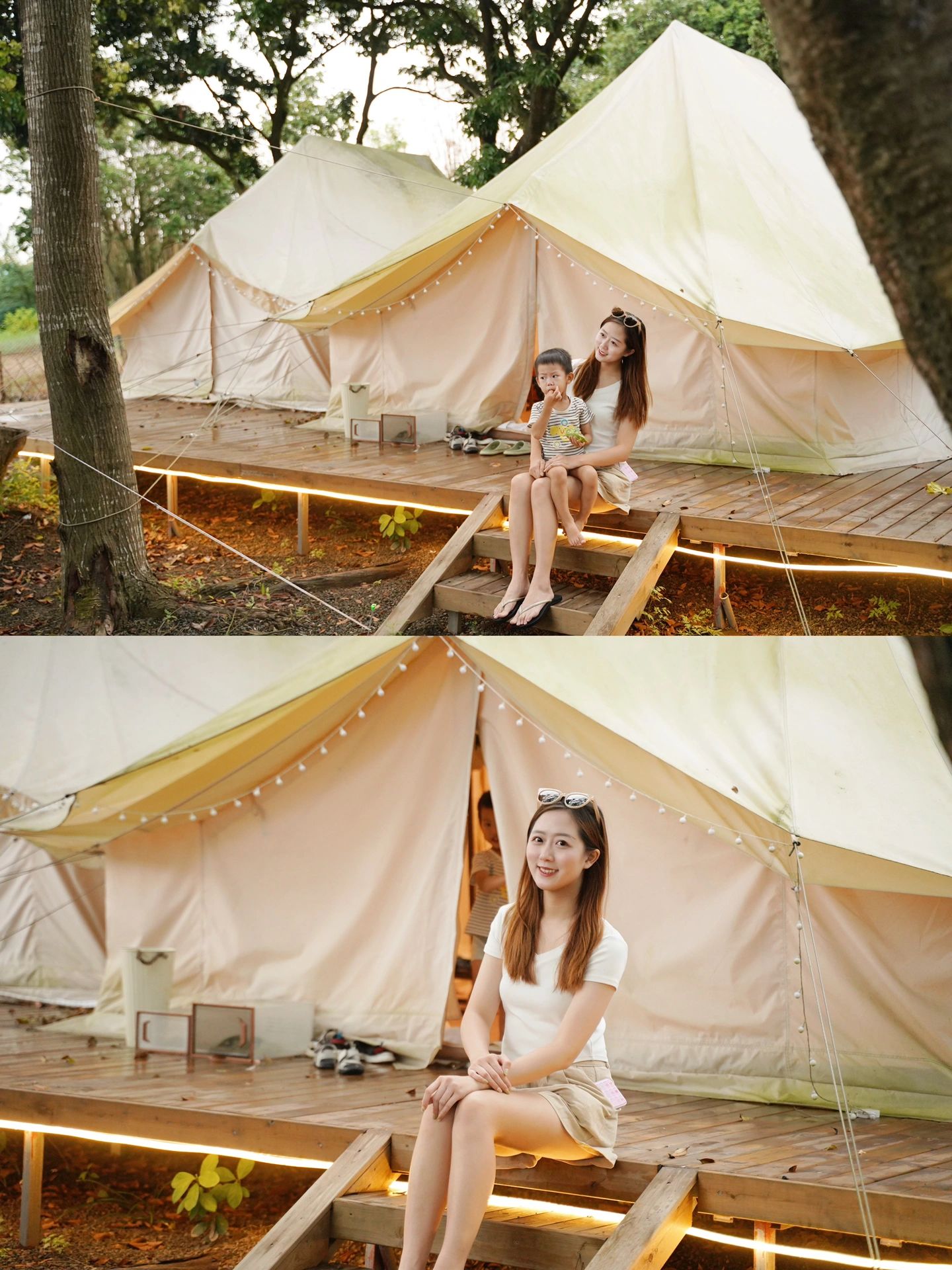 但那种是比较原生态的营地,帐篷里没有空调,更别说独立卫浴了🚿上个厕所都要走到路口的公厕🤣带小朋友去体验其实很不方便的。
