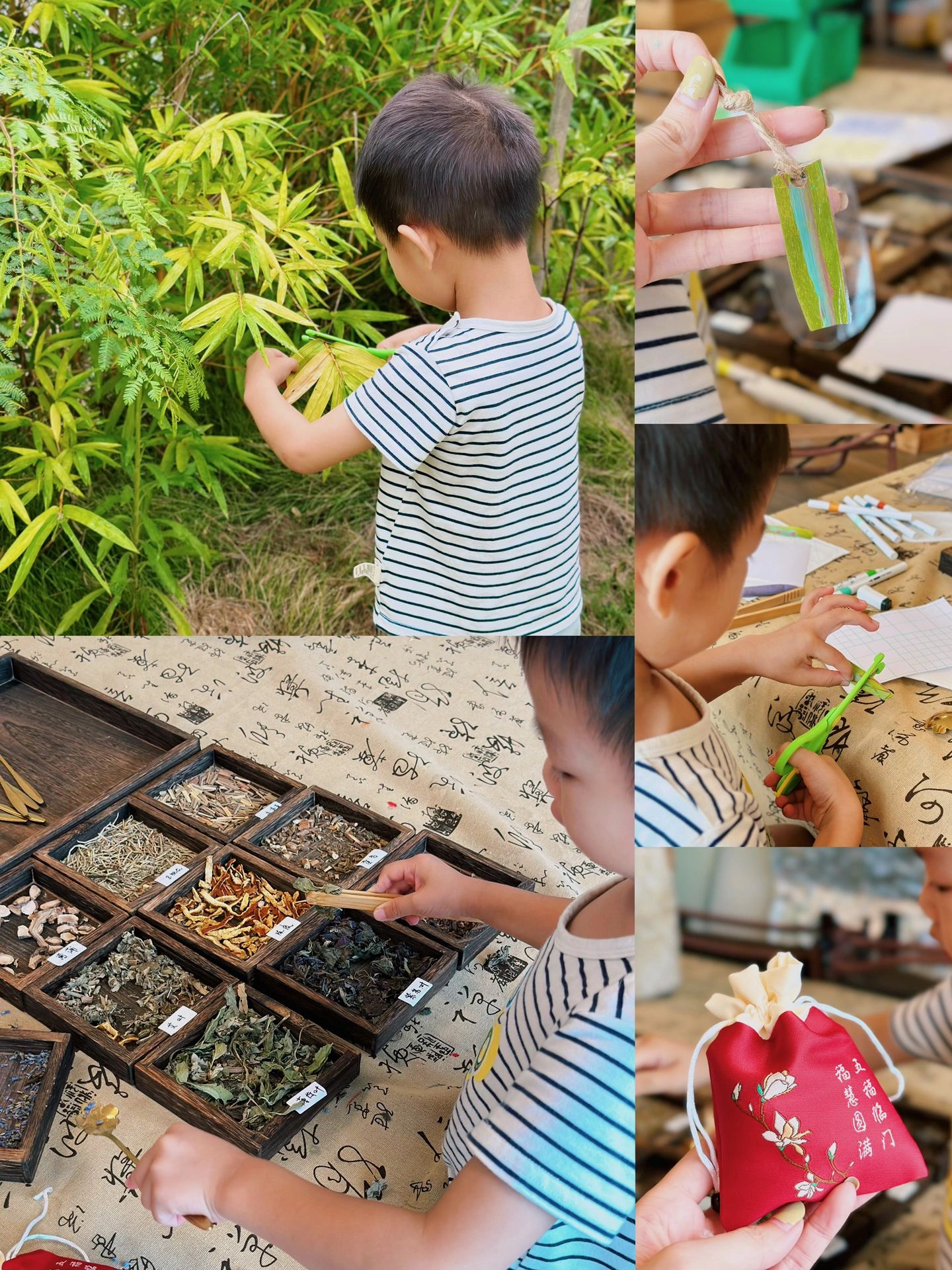 营地里也有小老师会组织手工活动,我们这次去就做了香囊包和竹叶书签🔖大粒玩得很开心!