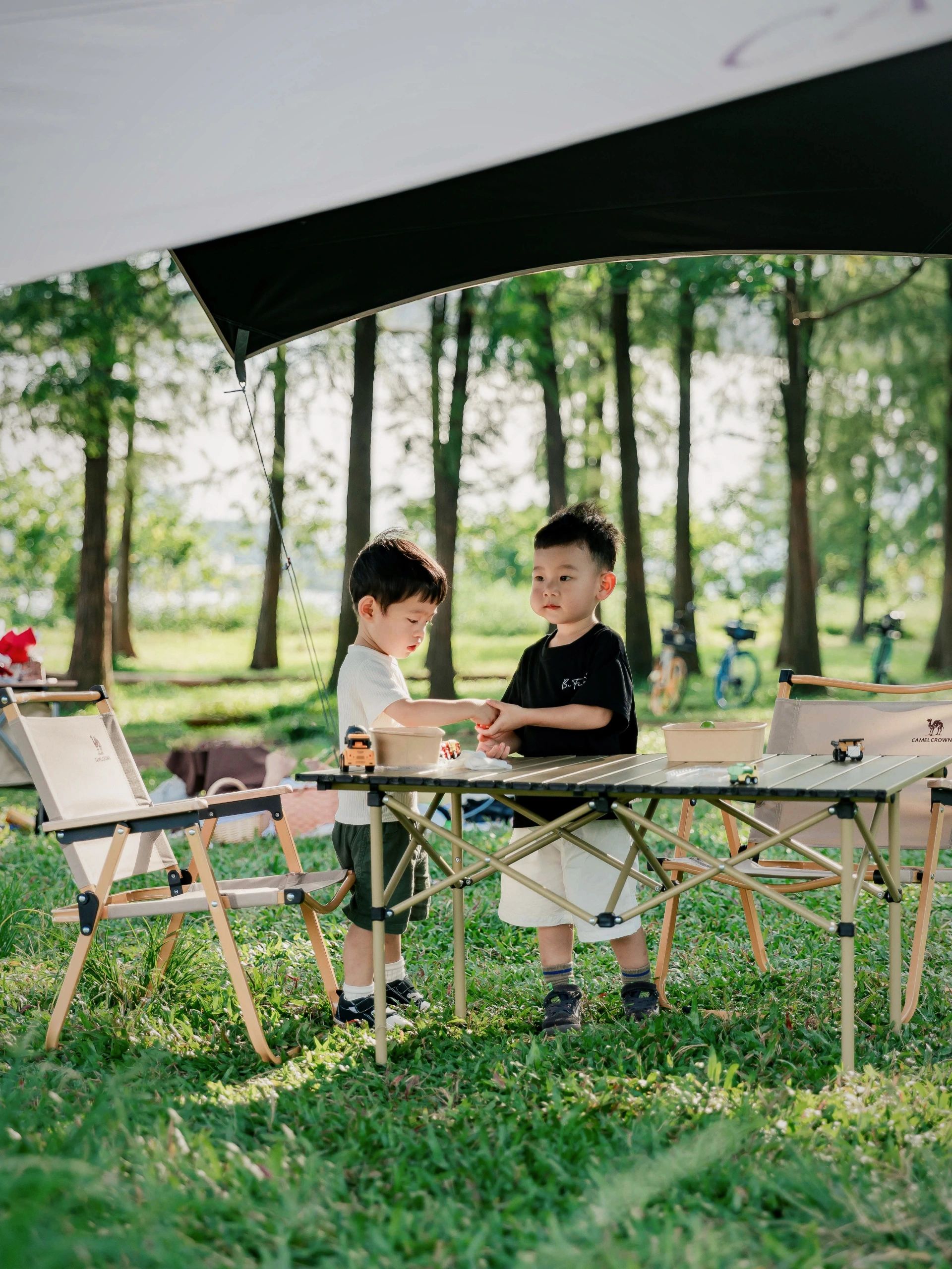 哈喽,我是爱遛娃拍照的靖靖 这几天的广州有秋天的感觉了。 台风走了一定要来这里露营、遛娃、拍照 一年要来好多次的公园。 公园:大学城梁明城雕塑公园 时间:开放式公园 拍照地:公园西侧的红杉林 拍照时间:下午4点多,这个时候的光线很赞!
