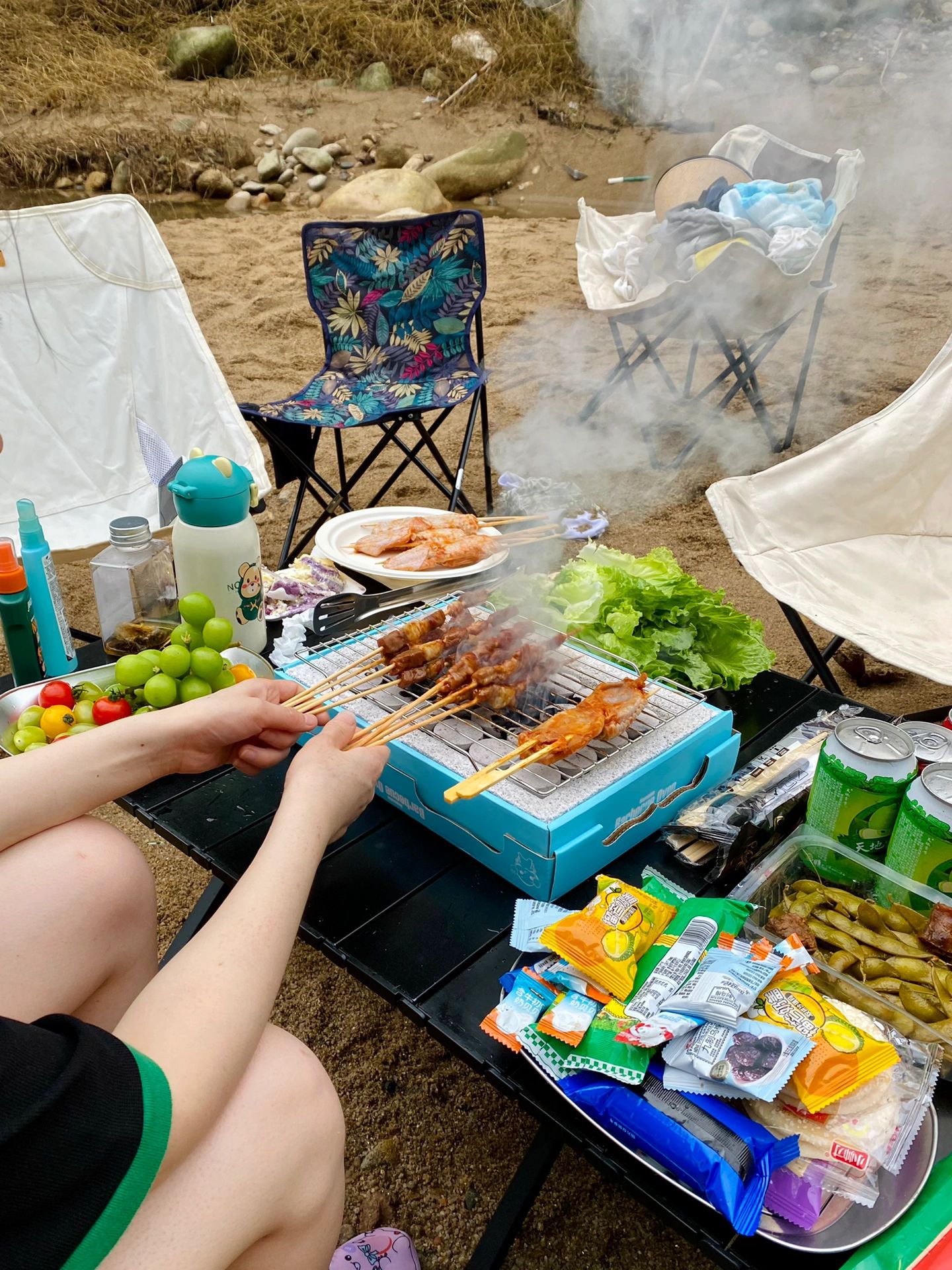 ✅可以烧烤,我们这次带了非常方便的一次性烧烤炉,还是自己烧烤的好吃,户外注意⚠️用火🔥哦!