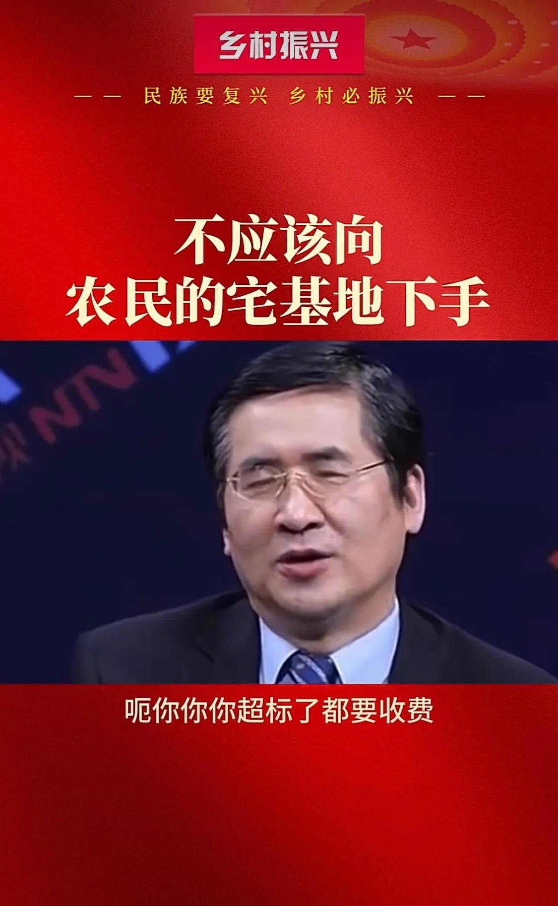 终于有专家为农村的宅基地问题发声了! 近日有专家说:民族要复兴,乡村必振兴!不应该向农村的宅基地下手。 第一 于法无依,国家的宅基地条例从来没有说,你超标了都要收费,超标收费都是各个地方折腾出来的政策! 第二 我觉得这个允许宅基地的收费啊,看的事少,感觉现在收的不多,但是引发的后果太恶劣,一旦收费以后很难杜绝,基层开始搭车收费,过去农业税为什么取消?虽然农业税收了好几百亿,但是搭车收费是它的好多倍,所以基层收费的口子一旦开,你就很难避免的各种的这个搭车收费的问题! 再者来说,很多农民的宅基地,本身就是自己的祖宅老宅,祖祖辈辈都在这住着,那么你为什么要收? 体谅一下农民的难处吧,疫情三年,农民已经过的很艰难了!