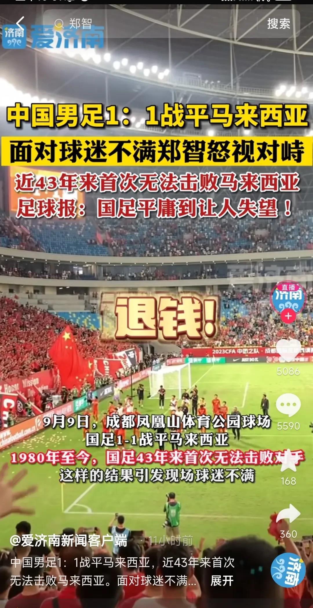 停止网暴男足队员郑智!这锅不背! 在国际赛战平马来西亚后,现场球迷怒骂男足丢人现