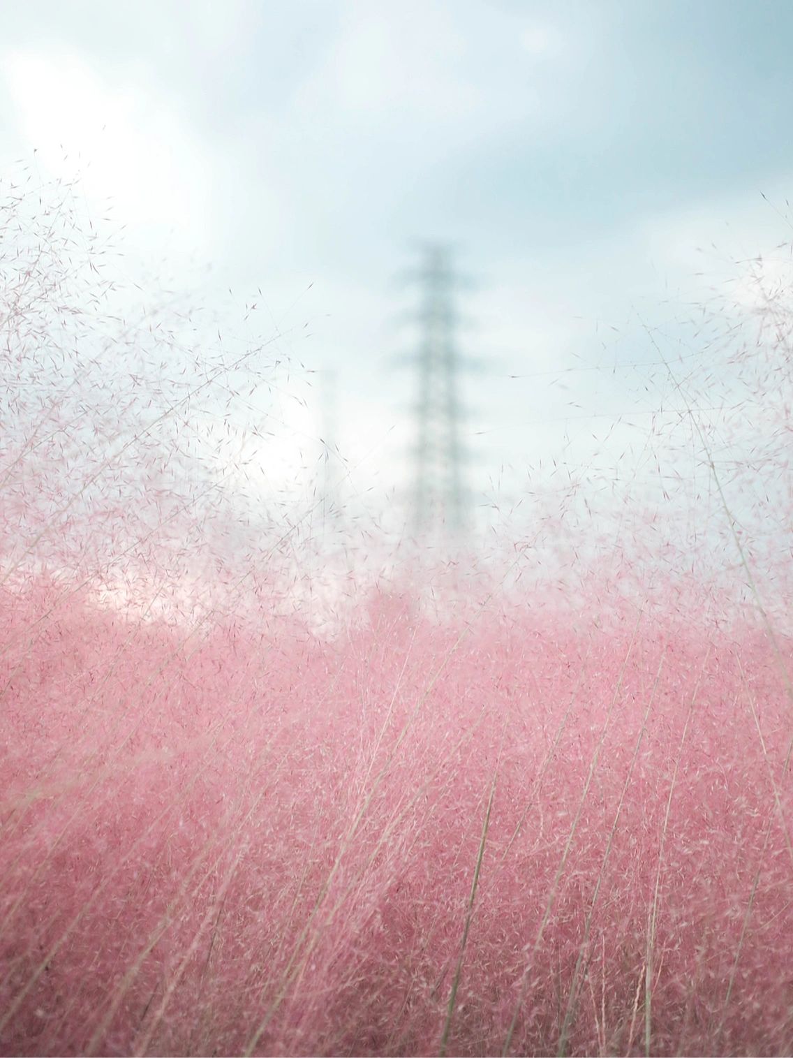 大片的粉色,搭配远方的电塔,清新又梦幻!
