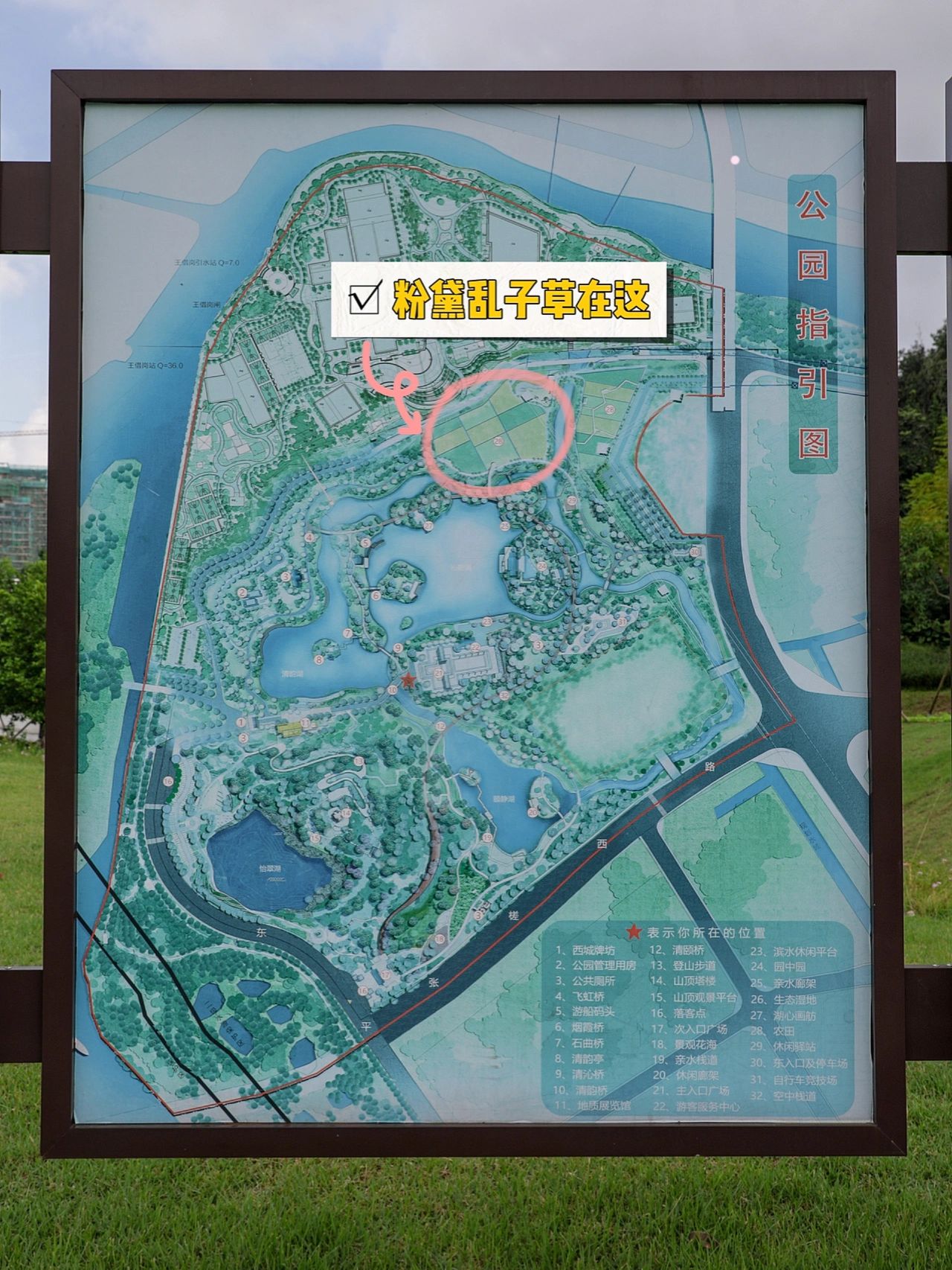 📍粉黛具体位置在农田区域,水车隔壁,从P1停车场进入比较近,进园后往很多电塔方向走就对了,图9地图有标注。