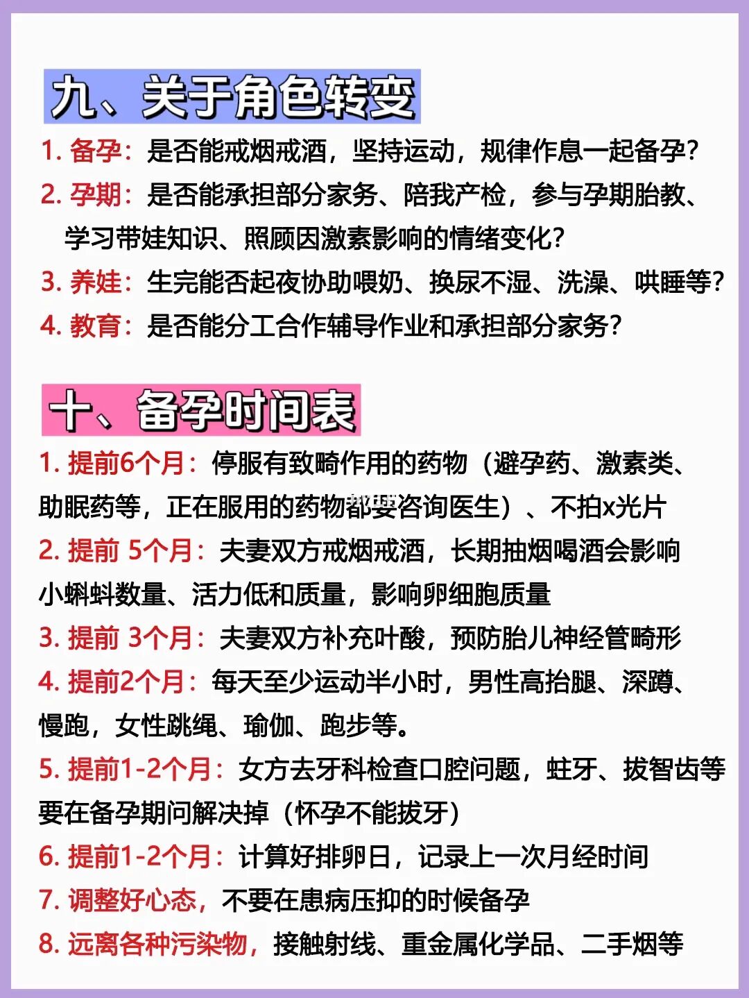 1.备孕:是否能一起调整生活作息,戒烟戒酒,坚持运动备孕?