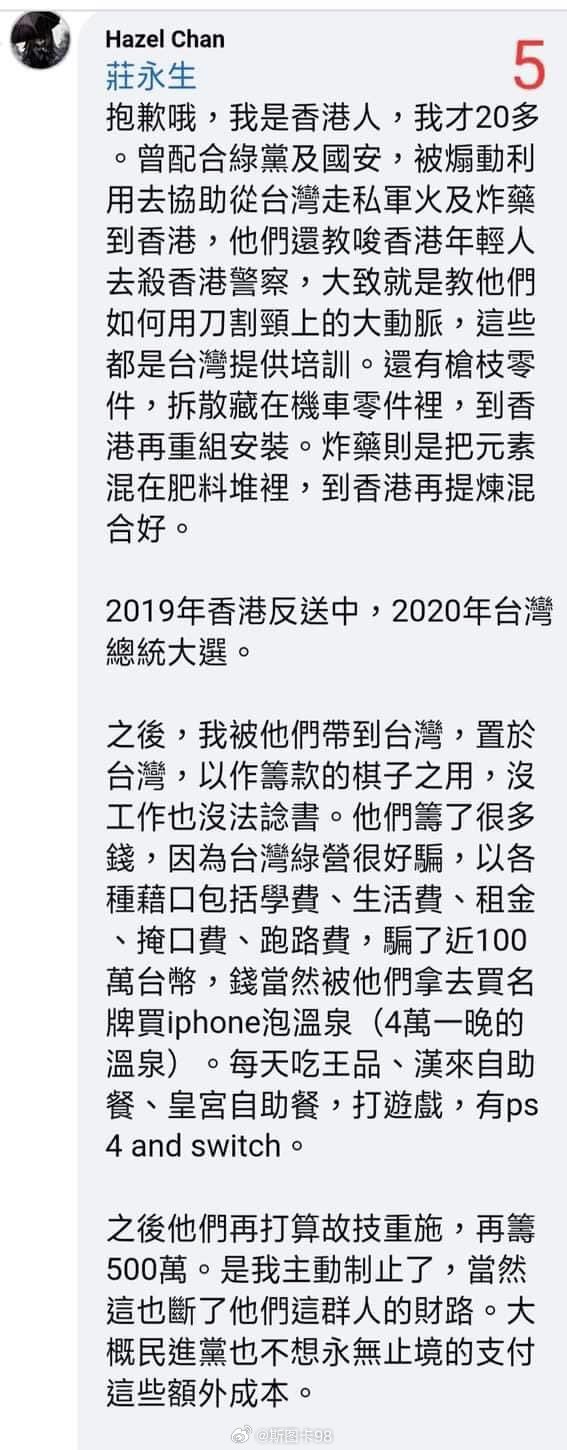 蟑螂被台利用完,随即当成垃圾,蟑螂受不了出来爆料,2019香港暴乱,台提供培训,教唆台年轻人杀警察,还提供炸药