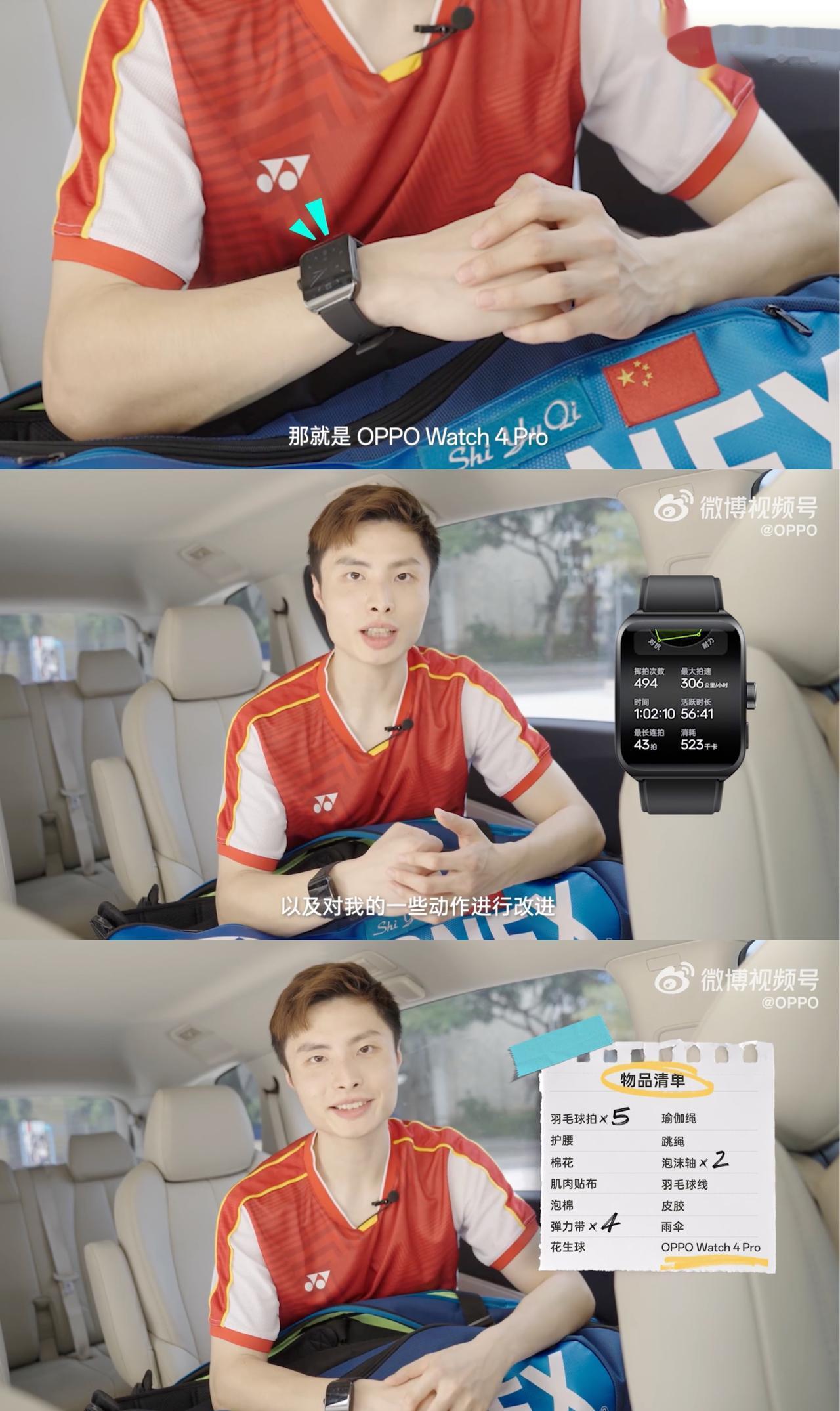 羽毛球世界冠军石宇奇的包里都装有哪些打球必备的好物?除了必备的球拍、弹力带等东西以外,还有一款羽毛球“神器”。 通过OPPO今天发布的视频来看,邀请了羽毛球世界冠军石宇奇,给观众展示了一下包里常带的东西,比如有5副球拍,还有护腰、棉花以及弹力带等东西,都是训练的时候用得到的,一个包的重量就达到了6kg,光提包就当练力量了哈哈哈! 而除了这些训练用品以外,石宇奇手上还戴了一款“神器”,就是OPPO Watch 4 Pro这款智能手表,它有着专业羽毛球模式,可以起到一个监测的作用,能精准地记录下挥拍次数、最大拍速、最长连拍等信息,还会生产五边图,更直观地像用户展示不同维度的表现,对于羽毛球新手来说非常合适,能帮助新手快速提高羽毛球水平。#OPPOWatch4#