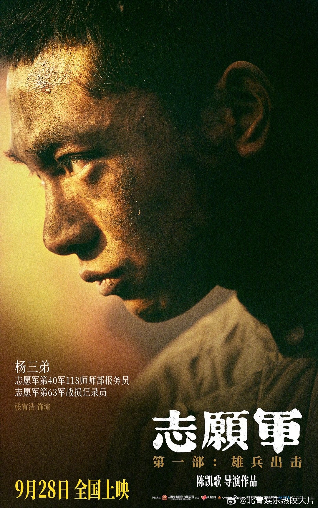 #电影志愿军第一部主要角色官宣#《志愿军》三部曲第一部《志愿军:雄兵出击》发布人