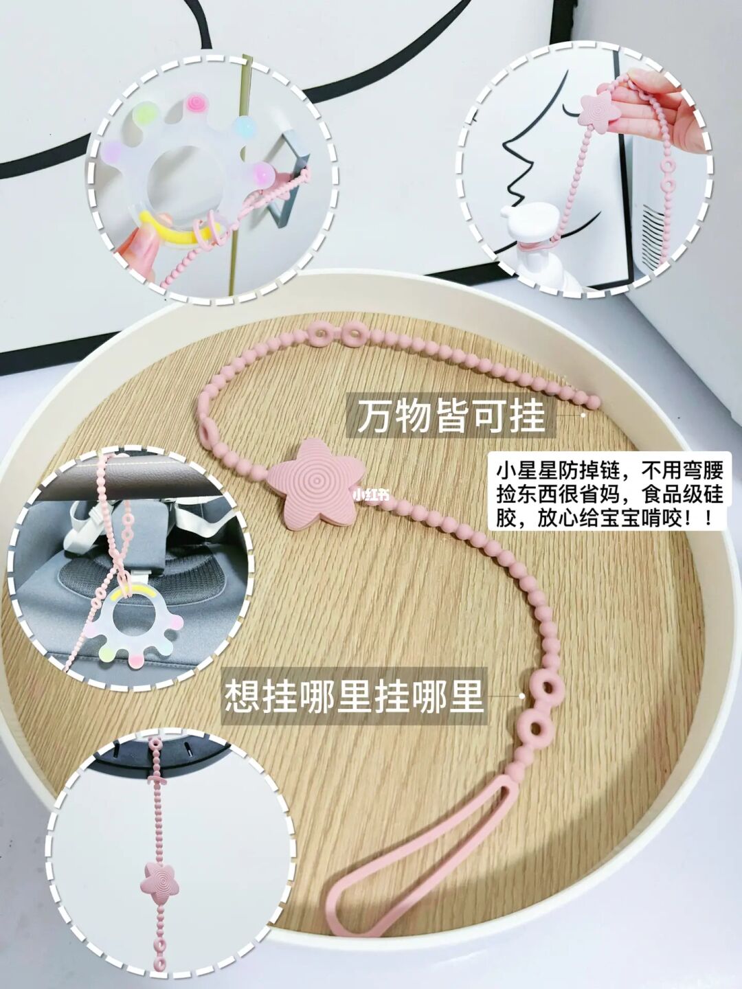 这个只要用牙胶的都必备,随意挂在衣物上、婴儿车上、抱被上都可以,不用捡来捡去,还得清洗,这个真的很省妈!