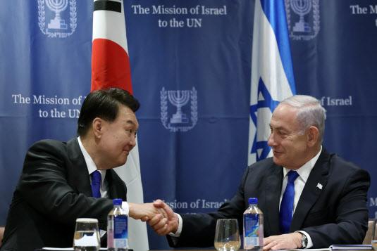 #韩国政治#【韩国总统尹锡悦与以色列总理内塔尼亚胡举行首脑会谈】 韩国总统尹锡悦9月20日(当地时间)与以色列总理举行了首脑会谈,两国讨论了扩大新产业领域合作的方案。 尹锡悦当天下午为了参加联合国总会,与在正在美国纽约与以色列总理内塔尼亚胡(Benjamin Netanyahu)举行了尹锡悦就任韩国总统后的首次两国首脑会谈。 韩国总统尹锡悦提及2022年12月生效的韩国-以色列自由贸易协定(FTA),表示此协定作为韩国与中东国家签订的第一个FTA,其意义重大。 同时,尹锡悦还评价道,“韩国和以色列两国在人工智能(AI)、替代能源等技术合作领域保持着紧密的合作关系。” 以色列的内塔尼亚胡总理提议,“我建议在机器人、智能移动、生物、量子等新产业领域扩大与韩国的合作。” 当天,尹锡悦和内塔尼亚胡两国首脑还决定在导弹防御、网络安保等国防领域寻求更深层次的合作。 另外,韩国总统尹锡悦还呼吁以色列各界为韩国申办2030釜山世界博览会(世博会)给予支持。