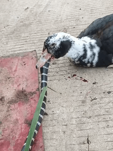 图一:小姐姐真是一个好人啊,直接就出去喂了蚊子,该说她什么好呢? 图二:不可思议啊,没有想到凶猛的蛇,在鸭子先生面前,也仅仅是一根辣条?