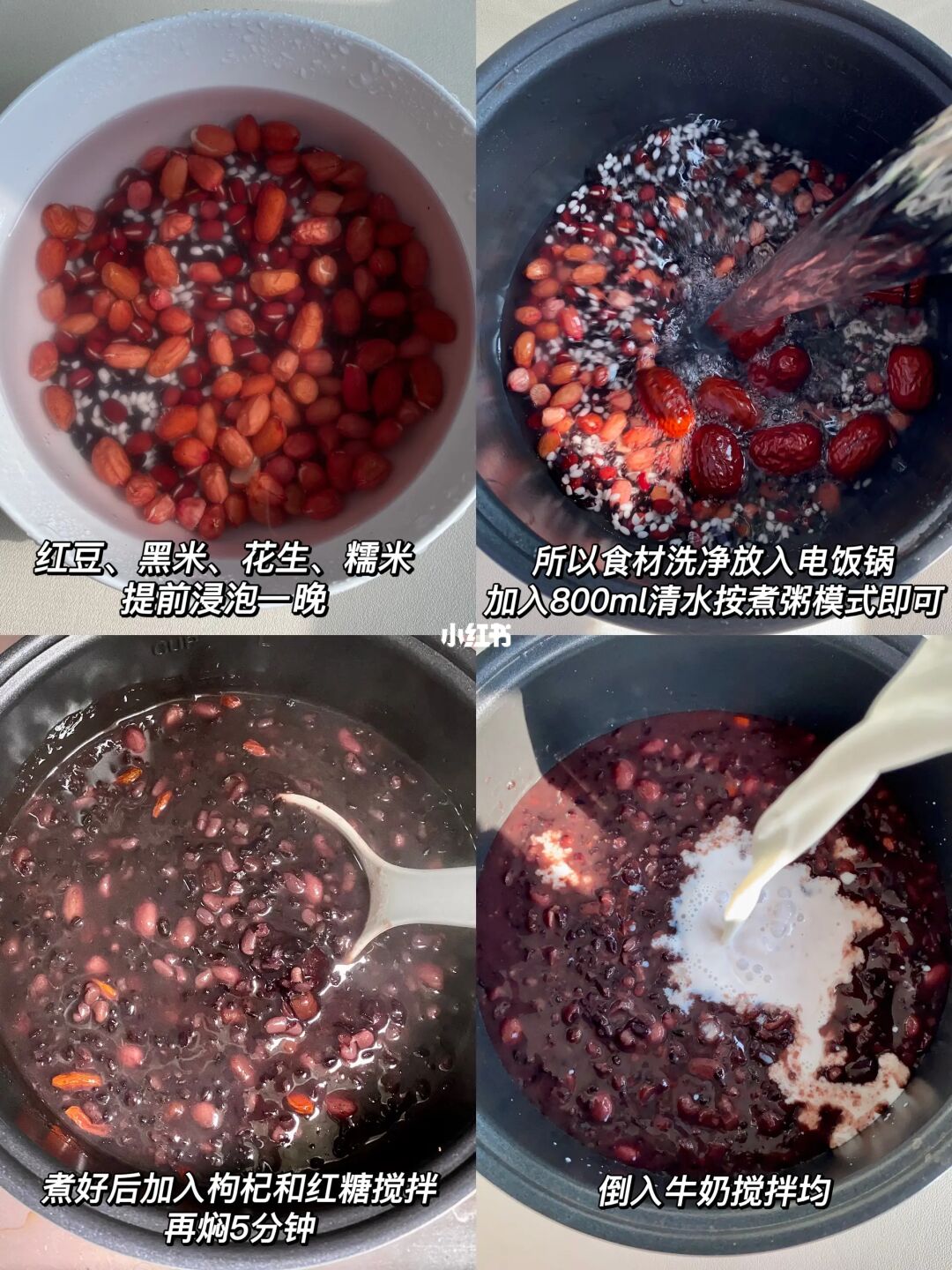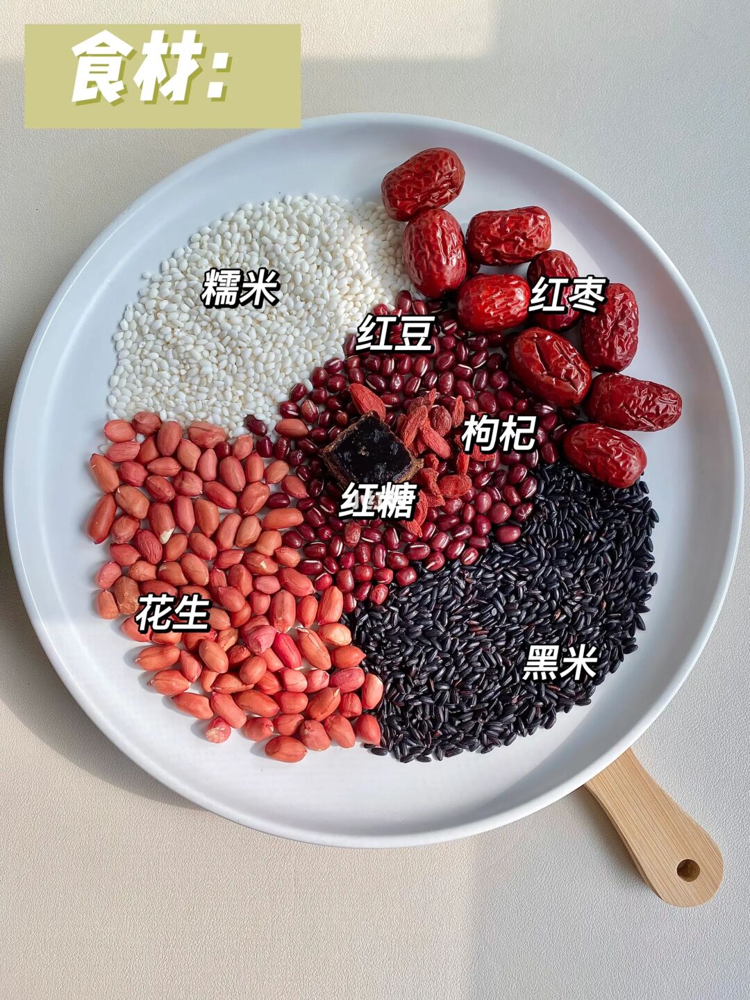 我妈妈经常给我做这个!因为我老是熬夜…😭 建议姨妈期气🩸虚、手脚🧊冷的姐妹都给我去喝!! 每周坚持喝一碗!给我100张面膜也不换!! 生理期就馋这一口!香香甜甜的!糯叽叽~贼香浓! 📝食材:红豆、黑米、花生、糯米、枸杞、红枣、红糖 🥣做法:食材以前净泡一晚、洗净放入电饭锅加入适量清水,按煮粥模式,煮好后加入枸杞和红糖搅拌均匀 都是对女孩子补气🩸好的食材!!五谷杂粮!! 女孩子可以多多喝!贼好喝~营养又美味!