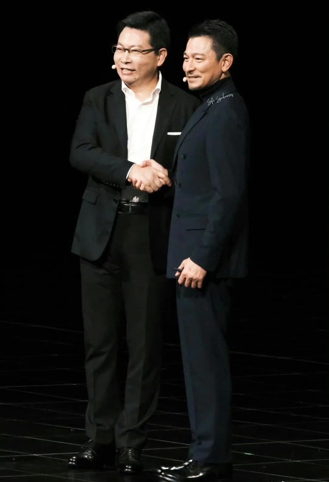 余承东不该穿增高鞋的, 他没有刘德华高, 现在看起来刘德华比他矮, 这是发布会唯一败笔。
